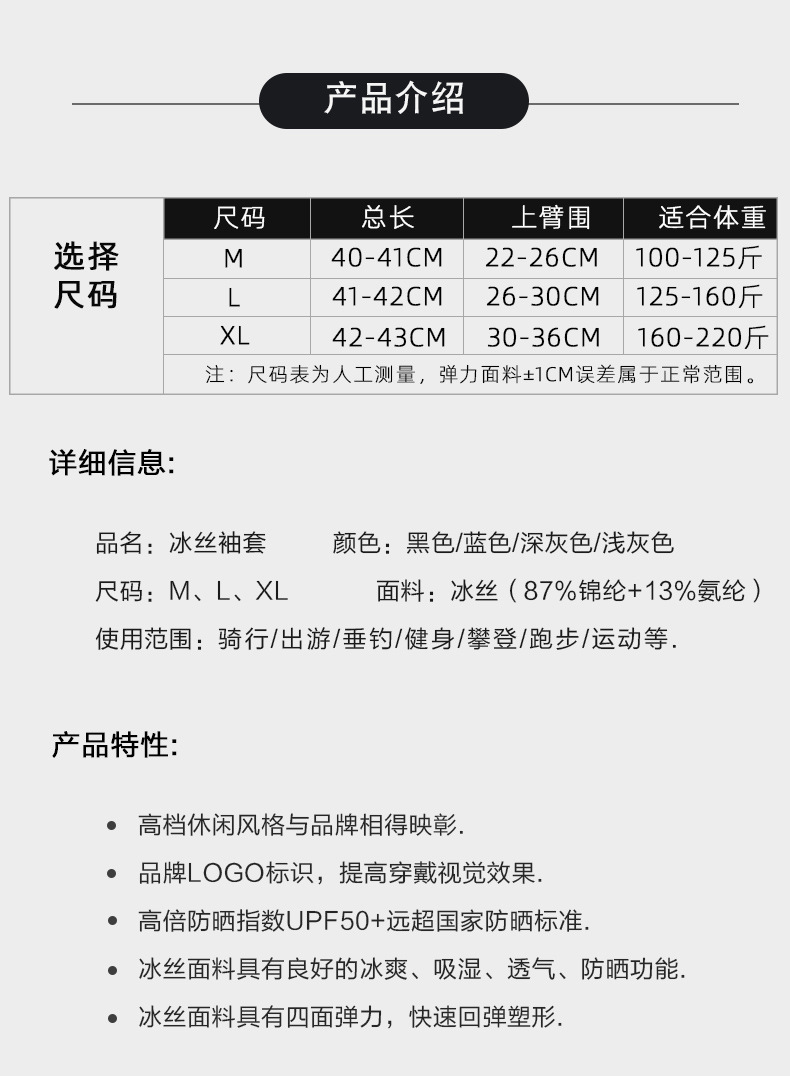 防晒袖套男款冰袖冰丝手袖凉感透气夏季防紫外线运动户外骑行护臂