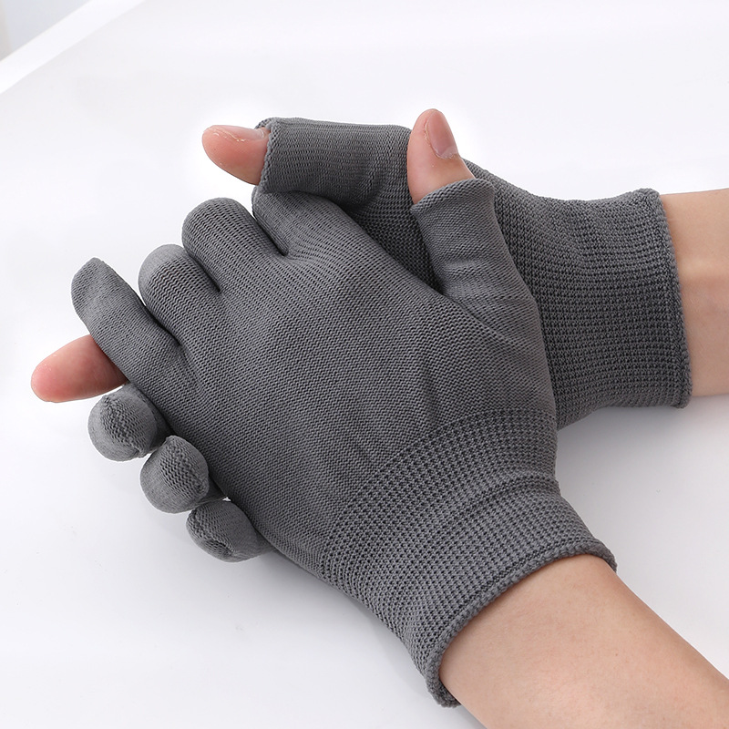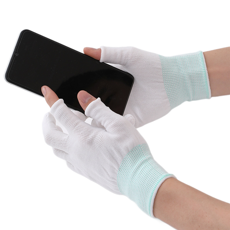 薄款防晒露二指露三指尼龙手套采摘防护男女工作打包分拣劳保手套