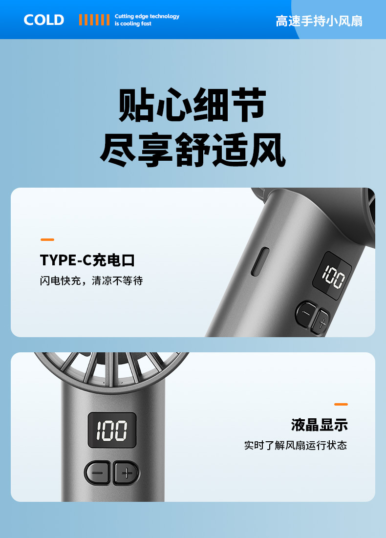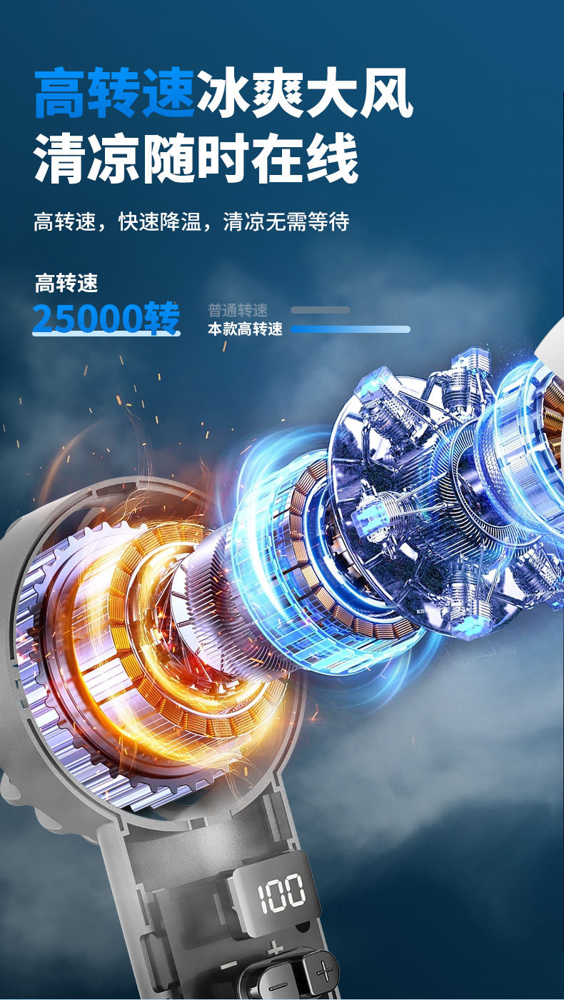 跨境手持小风扇充电款高速风扇桌面涡轮高转速迷你暴力电风扇批发