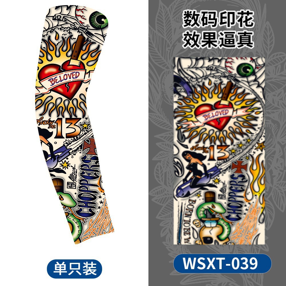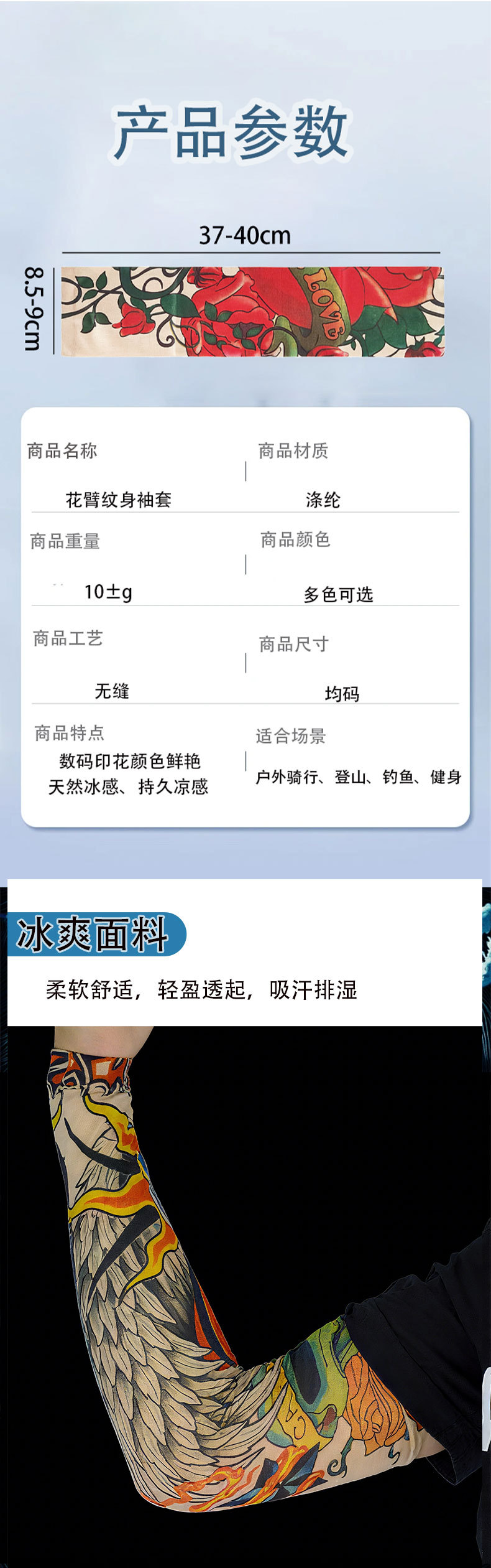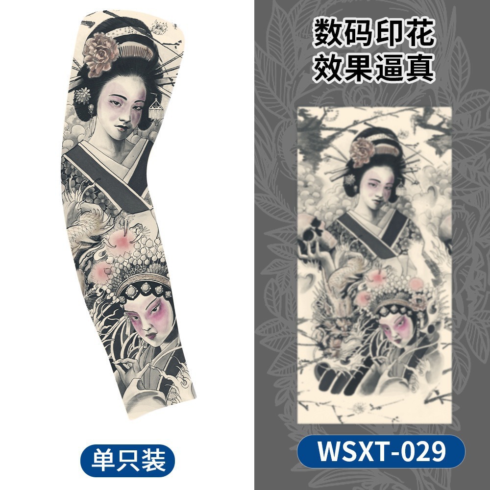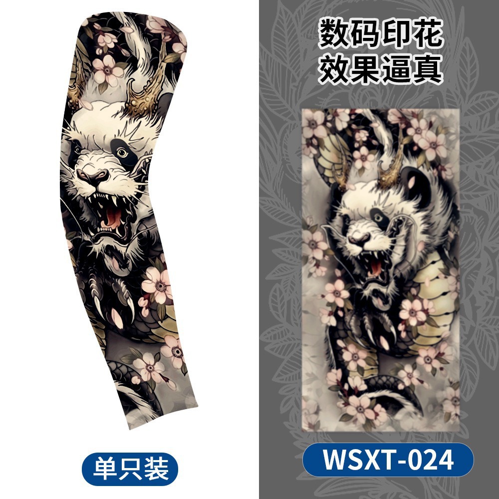 户外防晒纹身袖套仿真刺青速干护臂透气高弹花臂冰袖骑行垂钓套袖