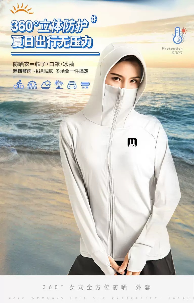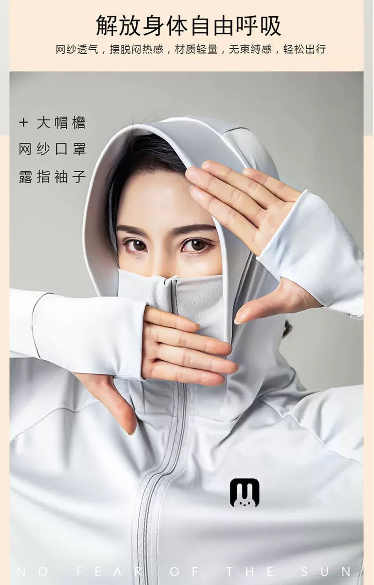 日本小兔子防晒衣女外穿薄款连帽冰丝网格防紫外线遮阳透气防晒衫