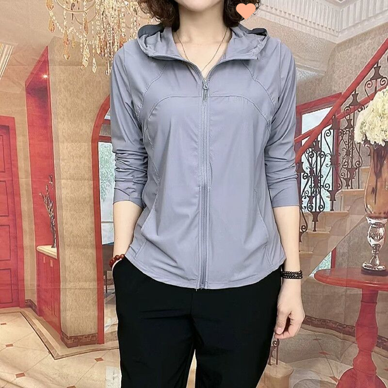 冰丝速干防晒衣女士夏季户外运动妈妈连帽防晒服女防紫外线皮肤衣