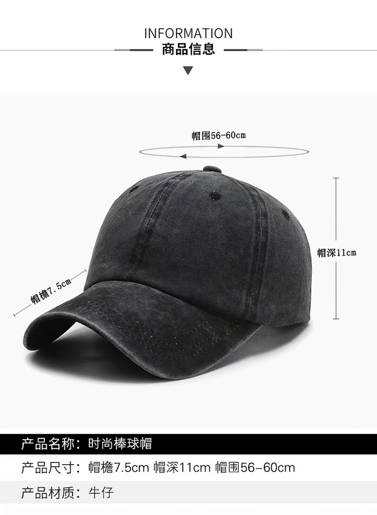 棒球帽热销走量款水洗牛仔净色鸭舌帽明星同款男女通用复古休闲帽