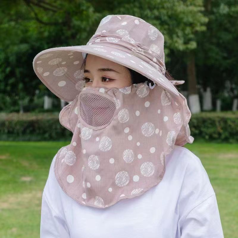 遮阳帽防晒时尚百搭遮脸护劲防紫外线太阳帽遮全脸采茶帽新款