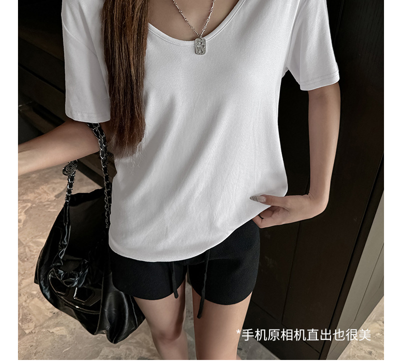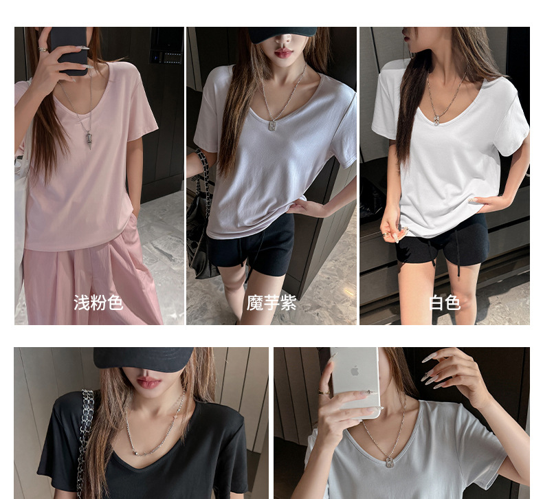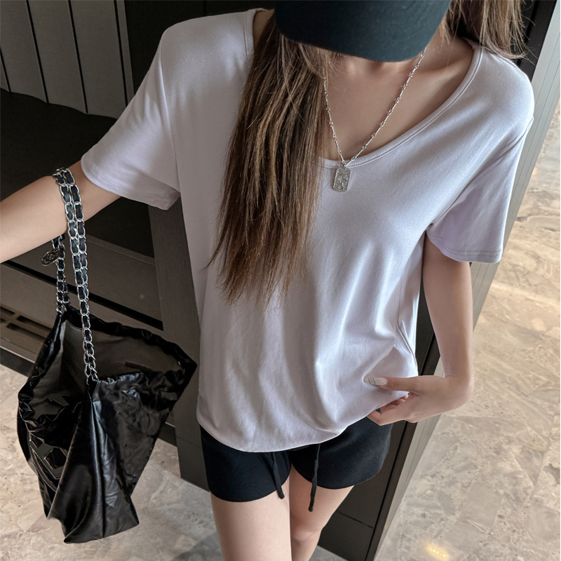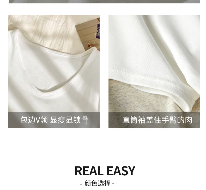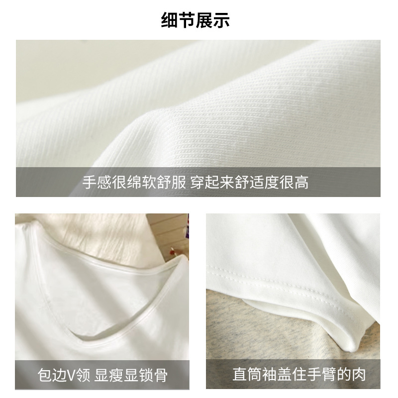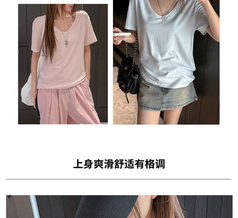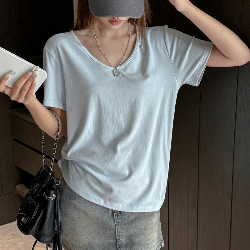 莫代尔V领宽松大版正肩短袖t恤女百搭外穿夏季高级感韩系女装上衣