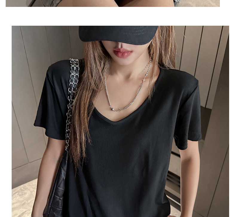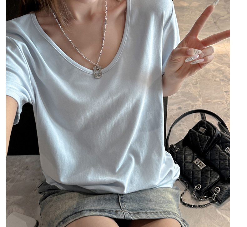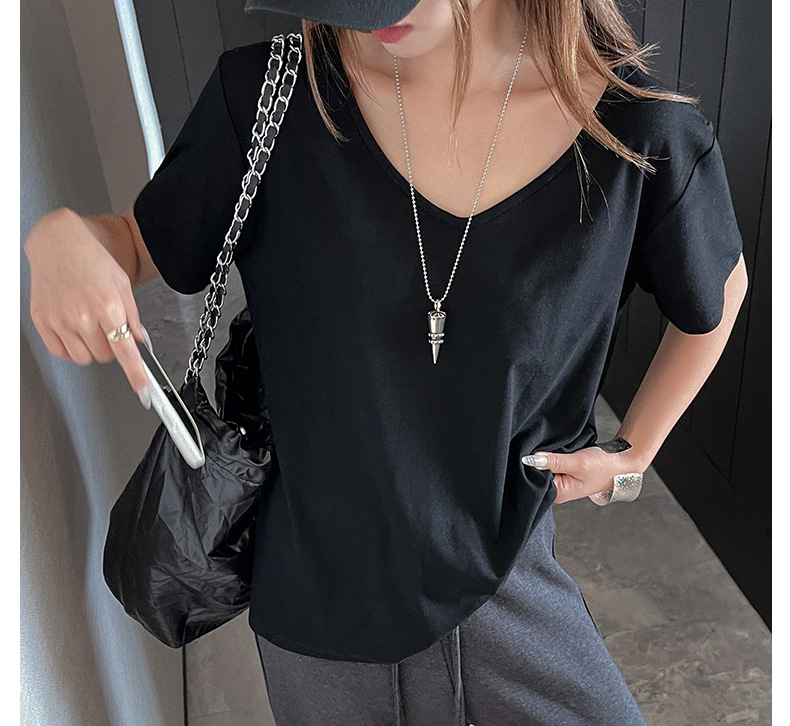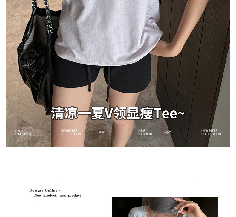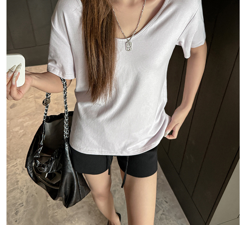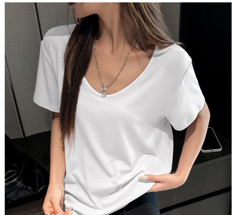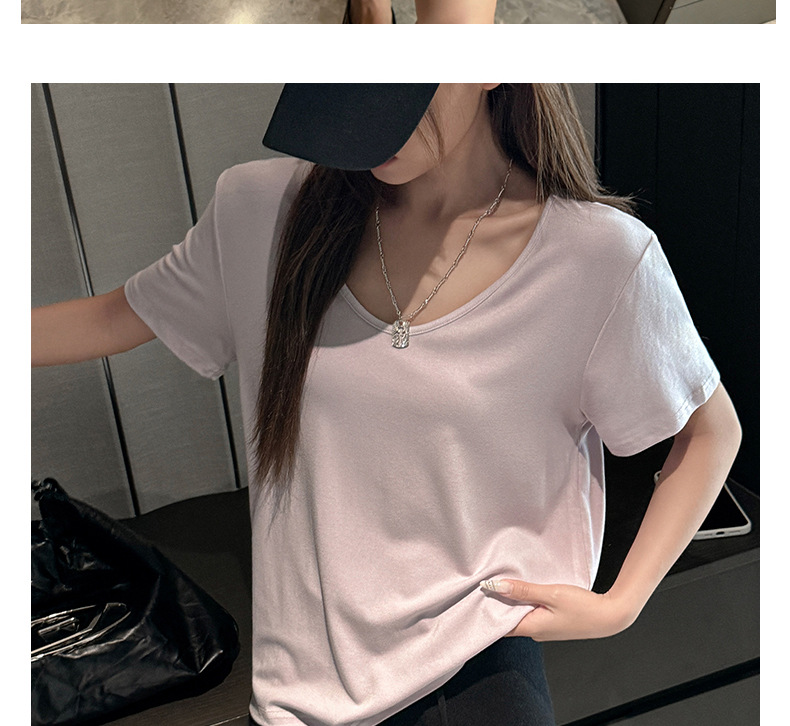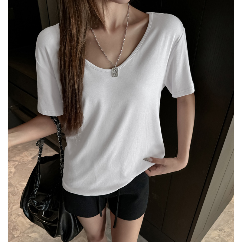 莫代尔V领宽松大版正肩短袖t恤女百搭外穿夏季高级感韩系女装上衣