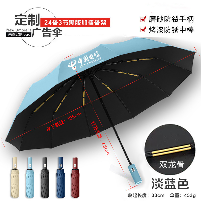 全自动伞男士加大加厚 24骨超大黑胶防晒遮阳伞 晴雨两用雨伞定制