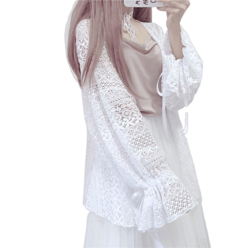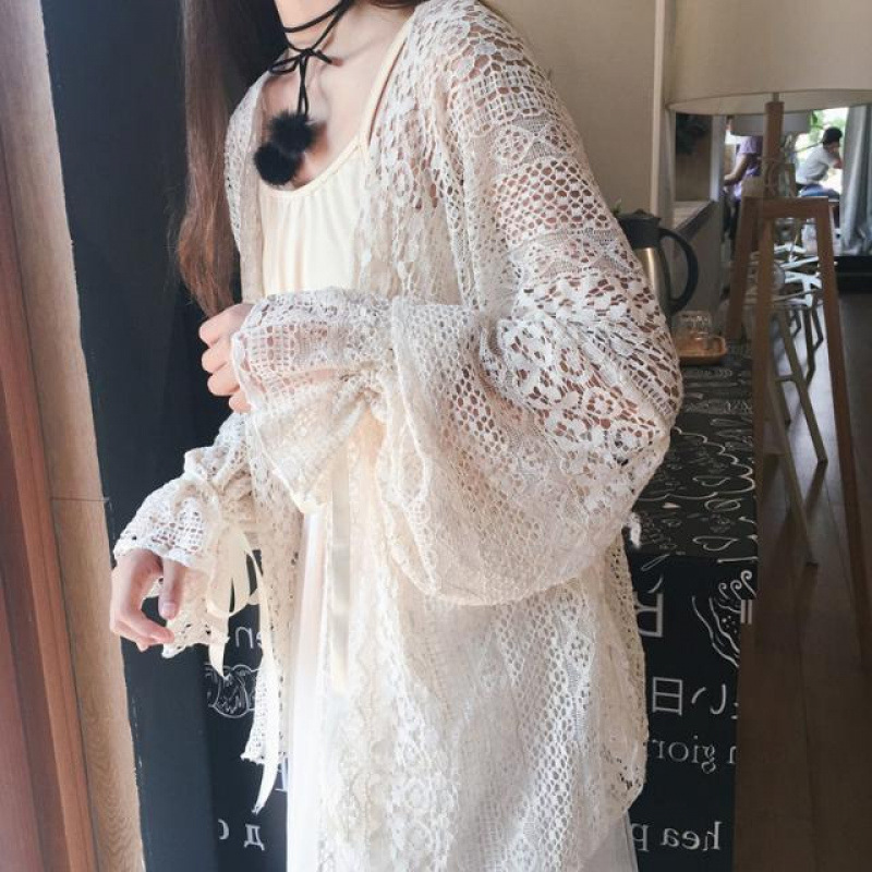 2025夏季薄款镂空蕾丝开衫中长款上衣个性百搭宽松外穿防晒衣外套