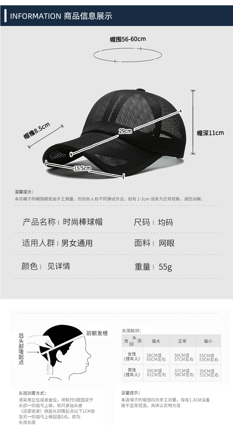 夏季男帽子镂空帽檐透气全网眼鸭舌帽户外运动防晒棒球帽女遮阳帽