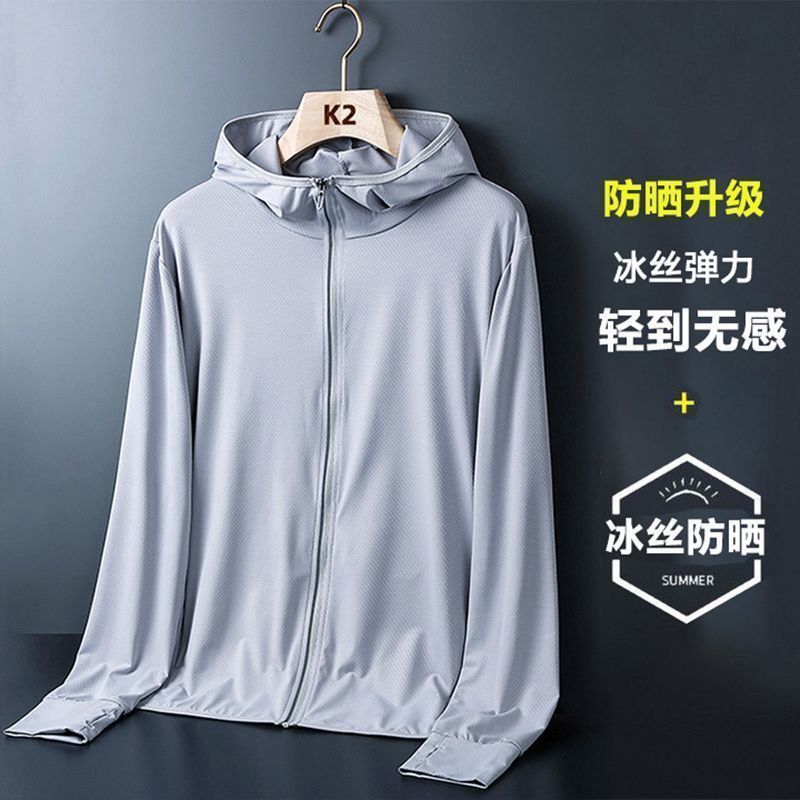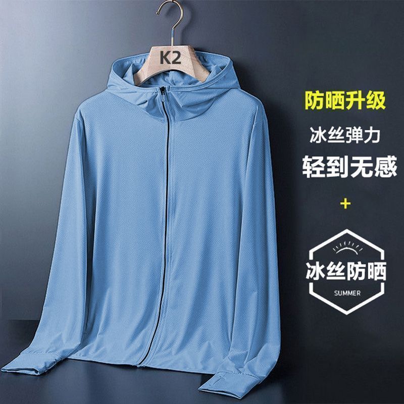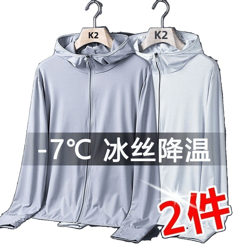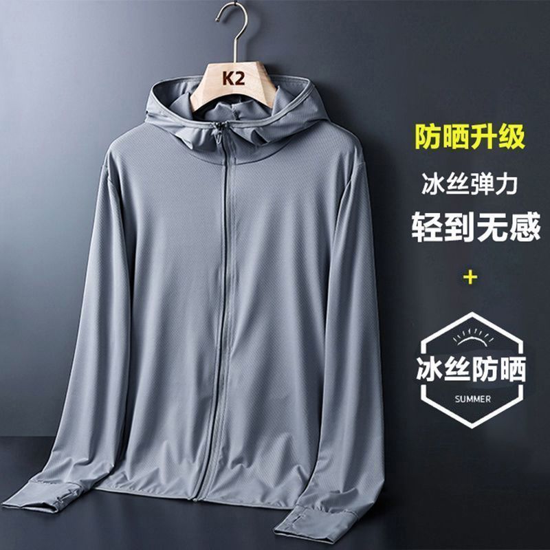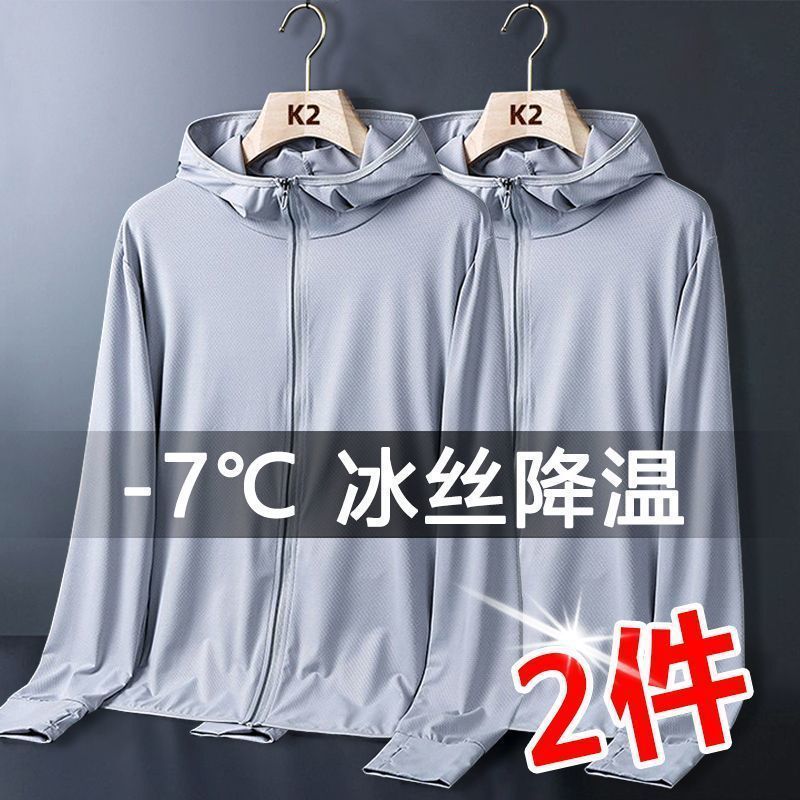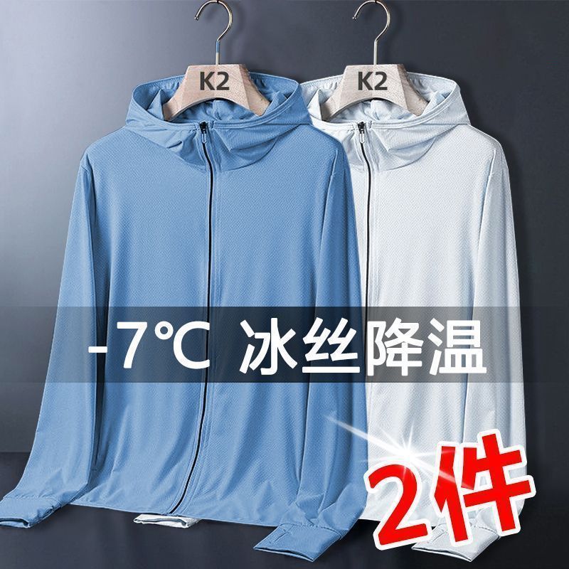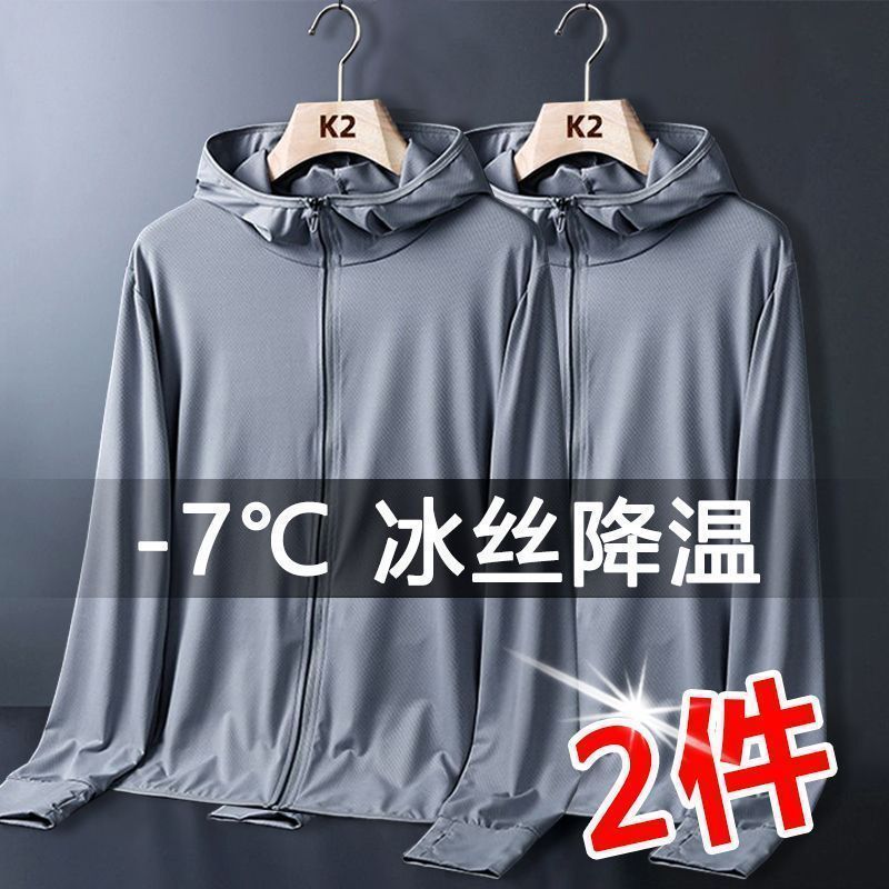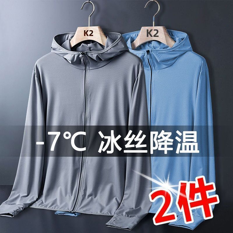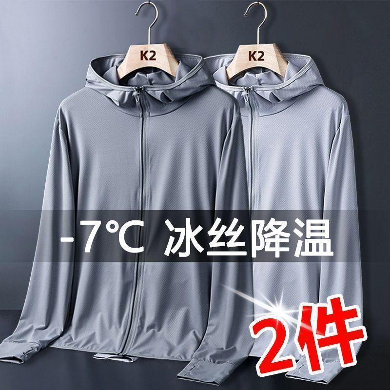 防晒衣男夏季冰丝薄款透气外套防紫外线钓鱼连帽防晒服男士1/2件