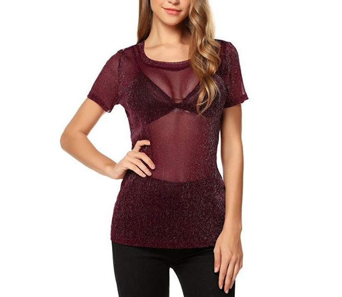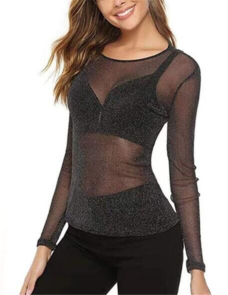 好质量 高弹银线网纱镂空短袖上衣 性感网眼透视罩衫T恤 工厂货源