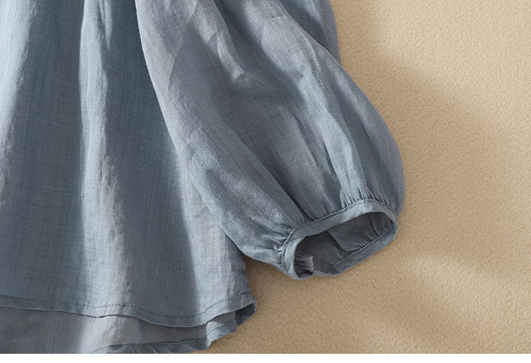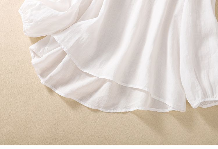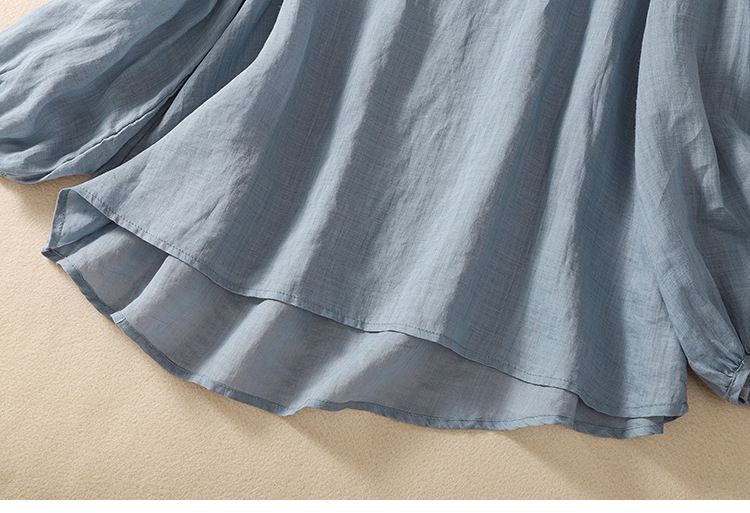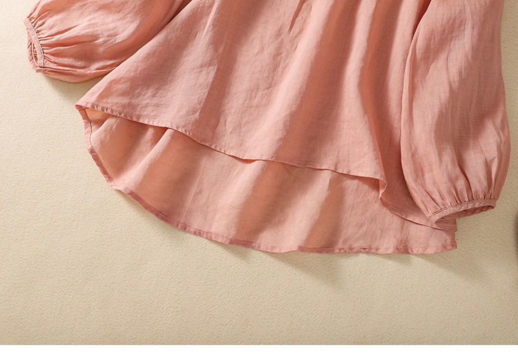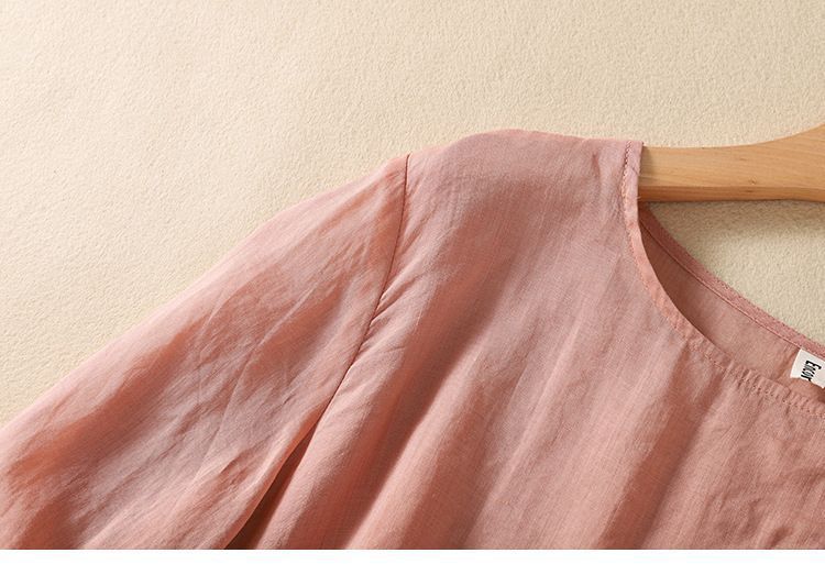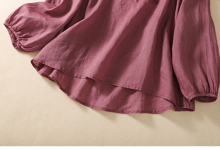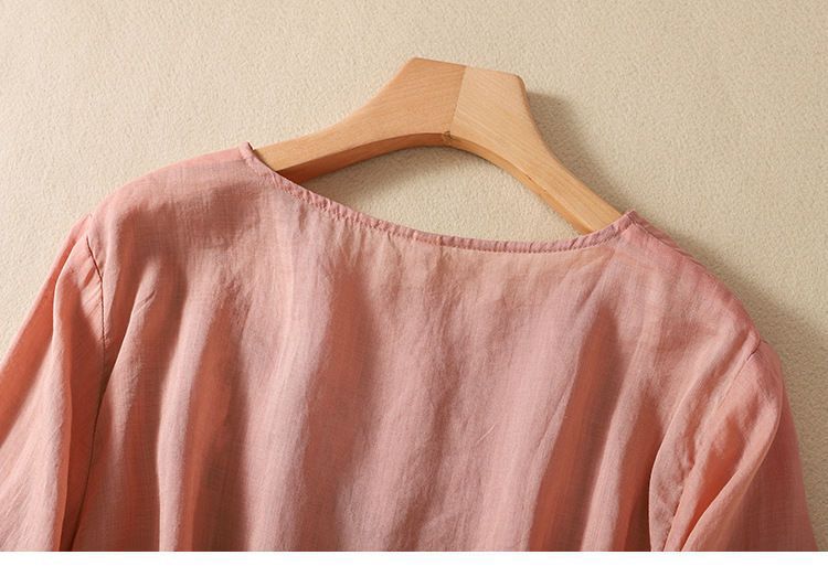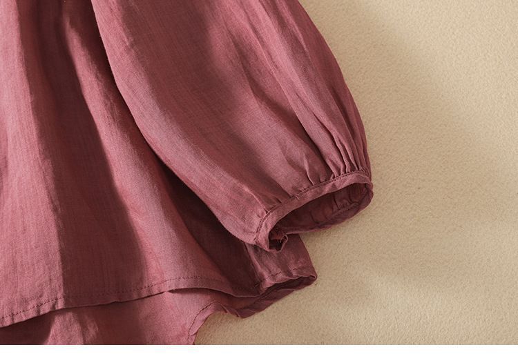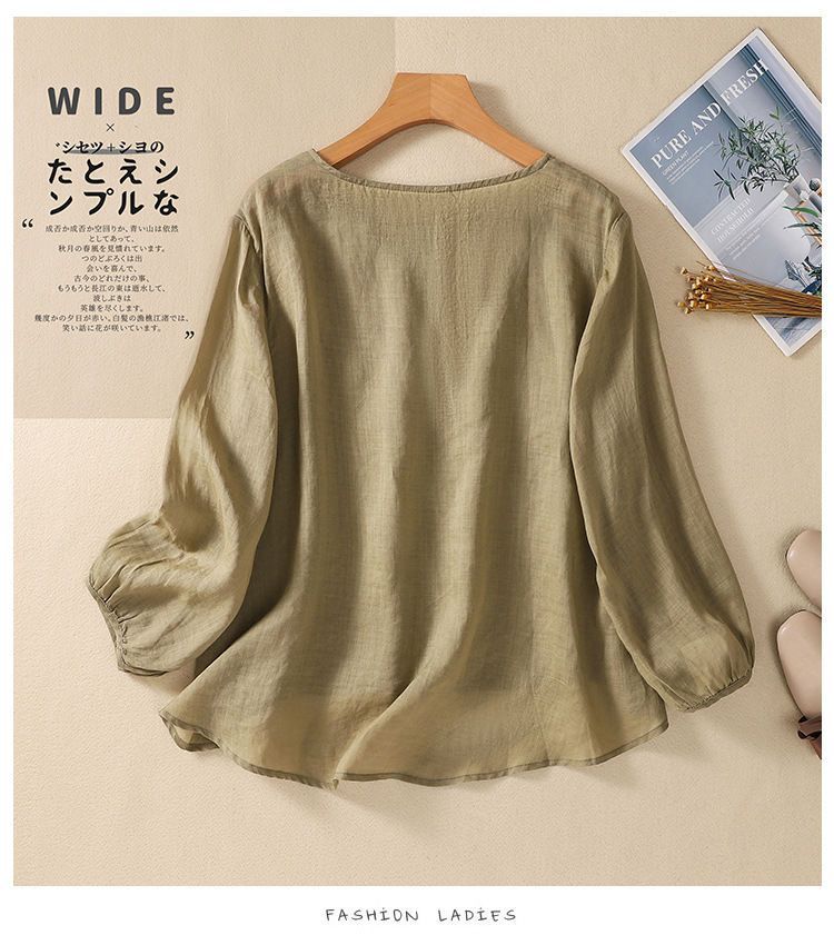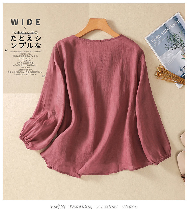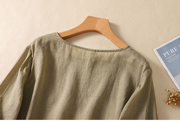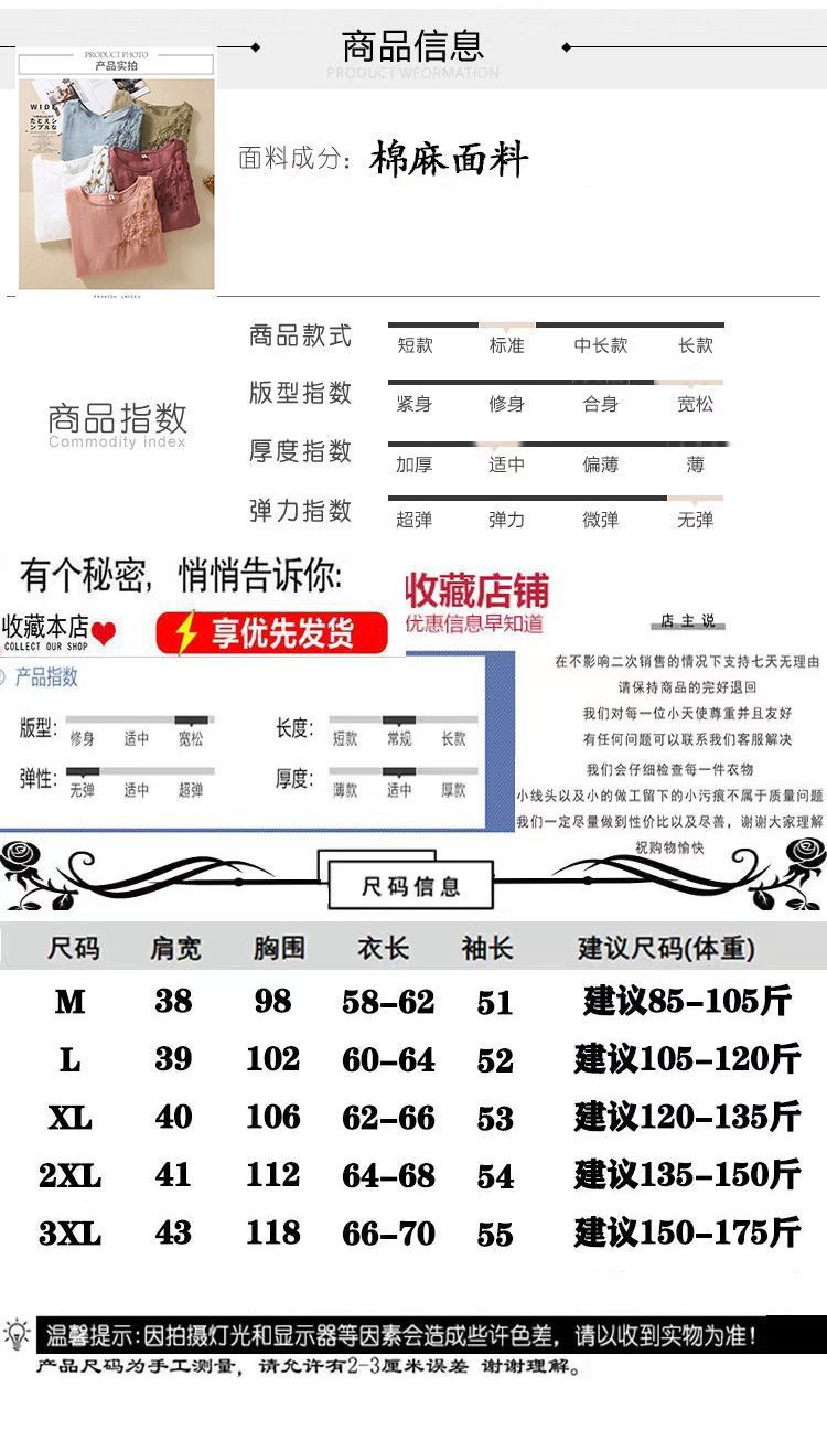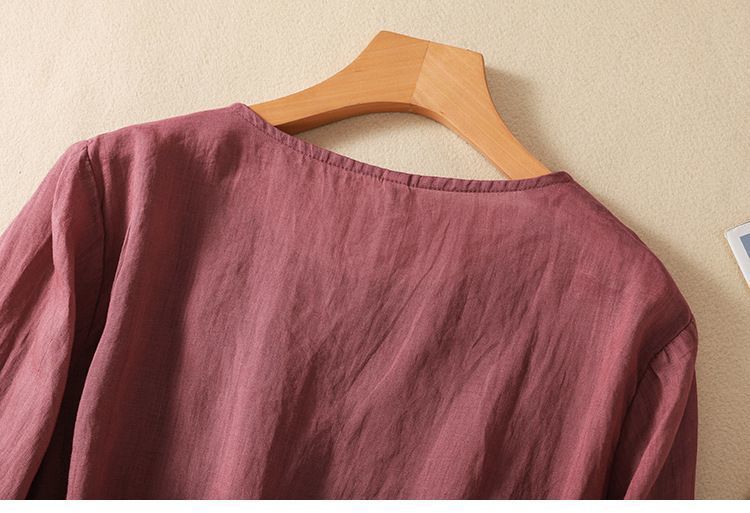 棉质】2023春夏新款刺绣圆领长袖T恤女复古文艺宽松套头绣花上衣