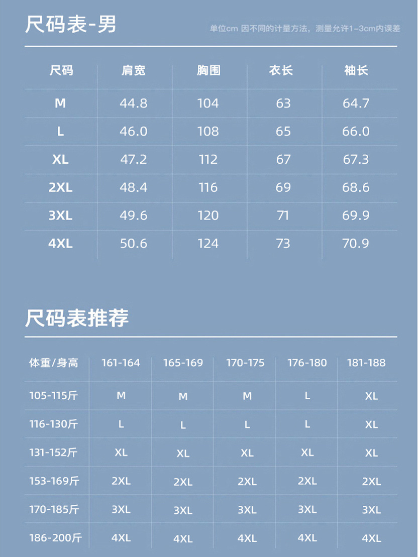 | 4XL 【适合190-210斤】 | USD $25.1 | 998 piece available |