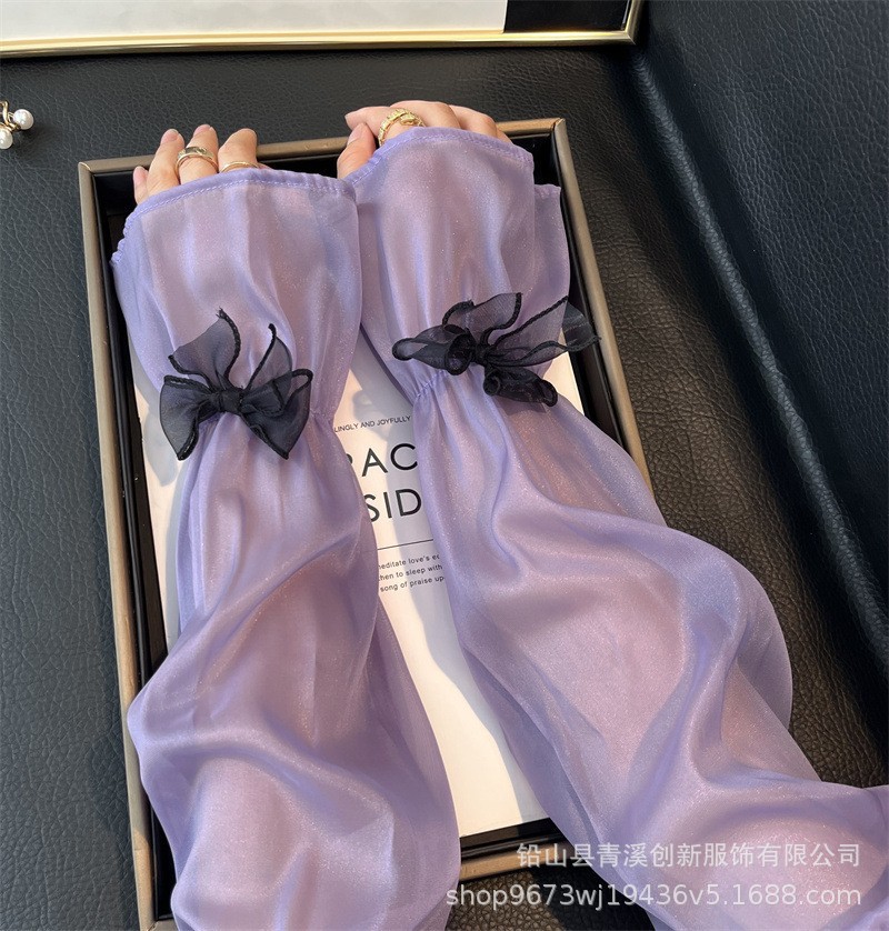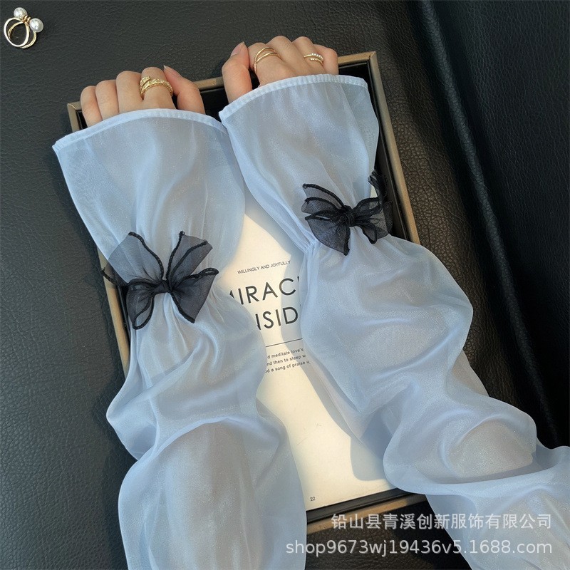 新款蝴蝶结喇叭宽松防晒袖套女夏季开车网纱学纺防紫外线时尚冰袖