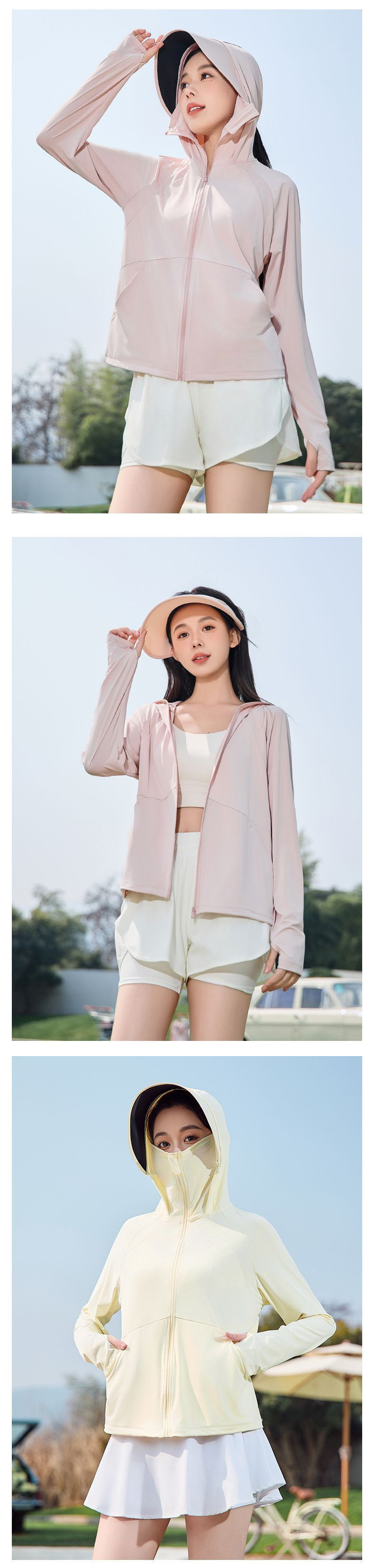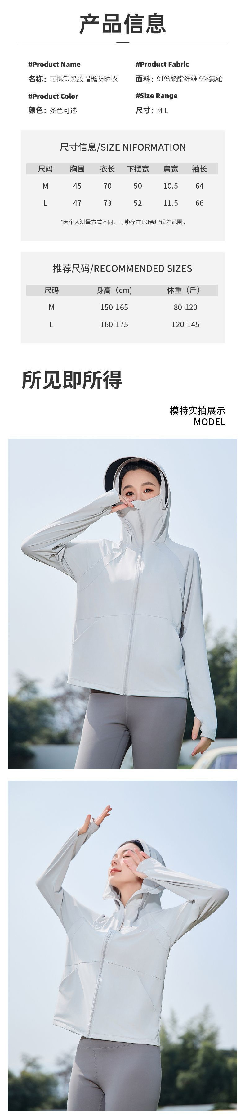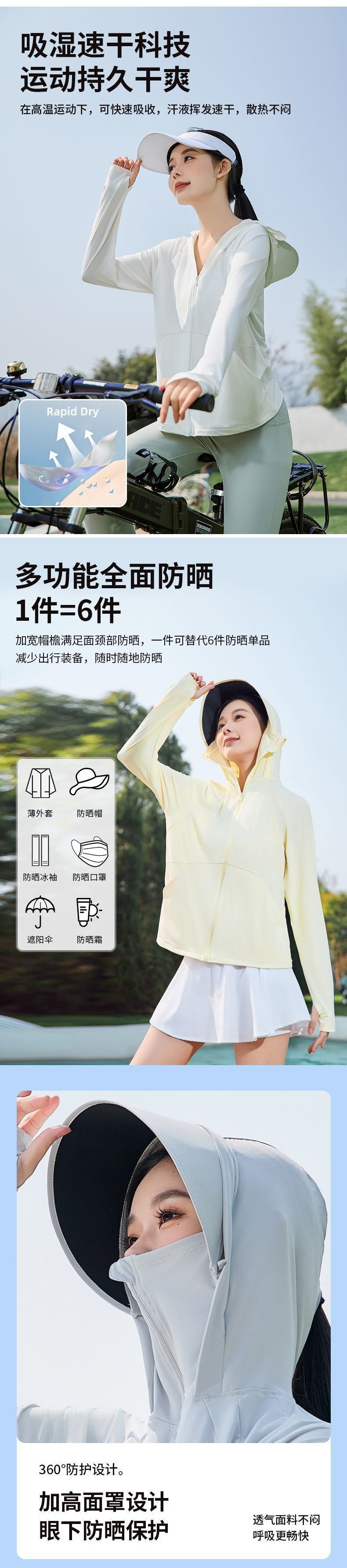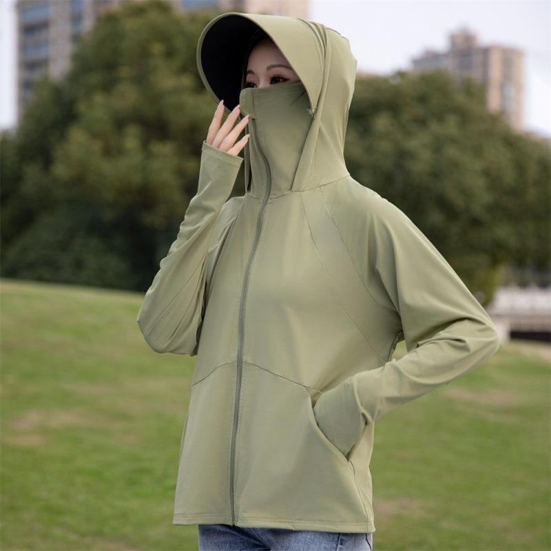 2025夏季冰丝防紫外线薄款防晒衣UPF50+遮阳透气外套可拆卸帽沿