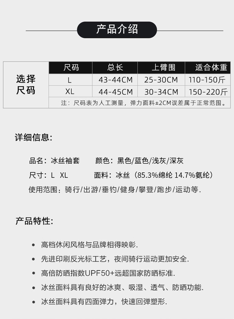 高档防晒冰袖男冰丝袖套夏季防紫外线骑行手臂套超薄冰爽透气手袖