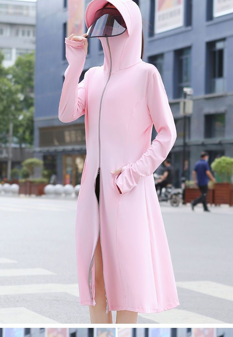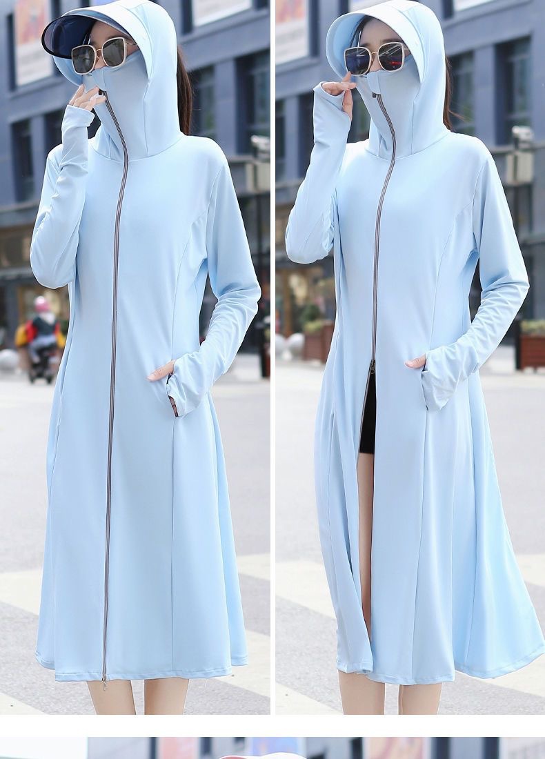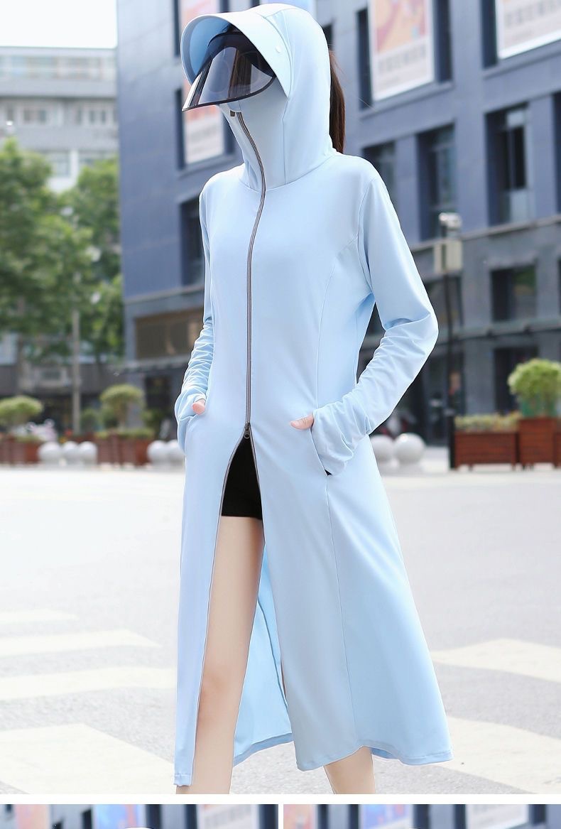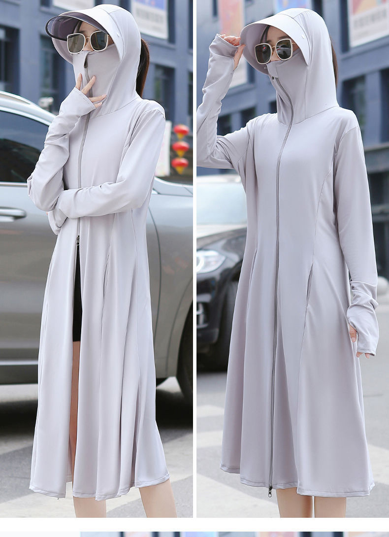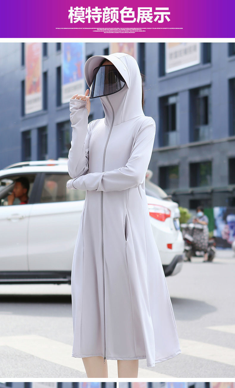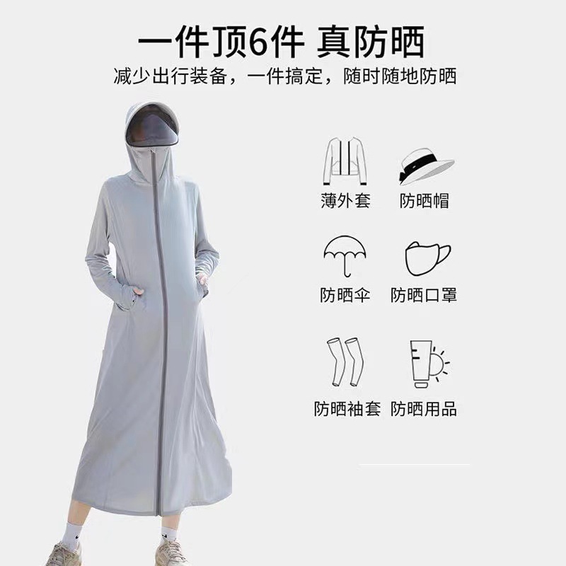 防晒衣长款全身过膝修身冰丝大帽檐防晒服防紫外线透气罩衫户外