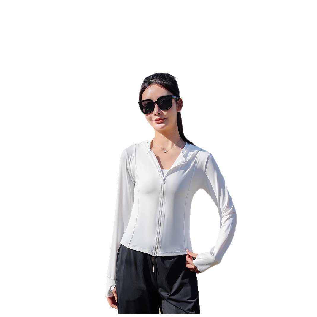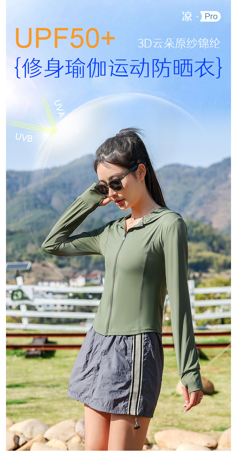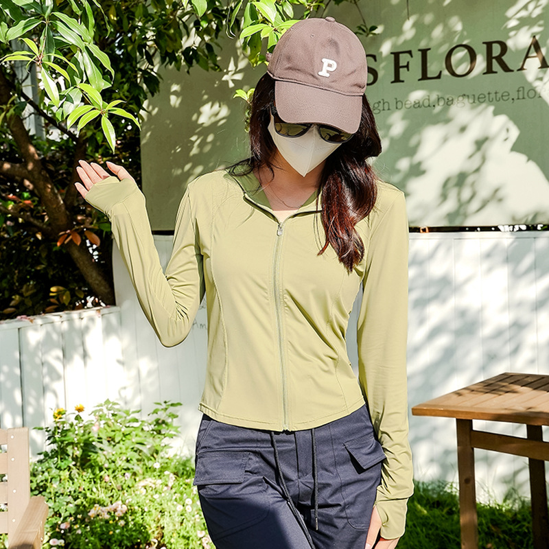 新款小蛮腰修身瑜伽防晒衣夏季骑行披肩外套原纱锦纶冰丝料防晒服