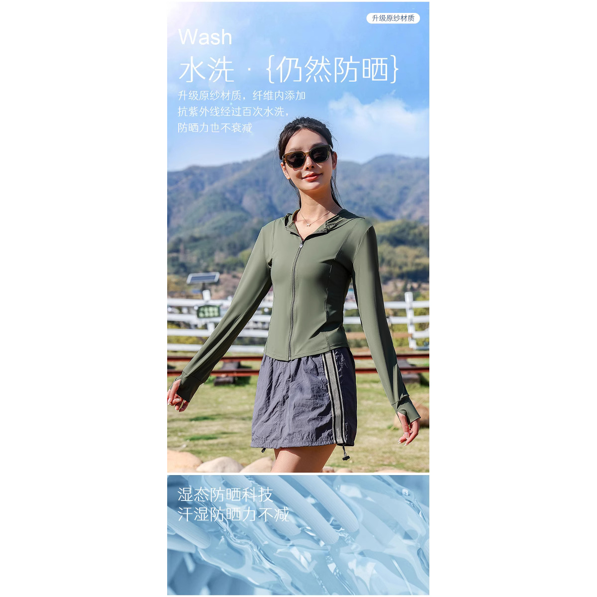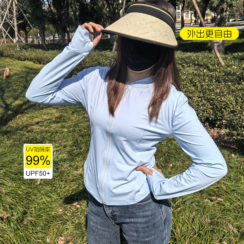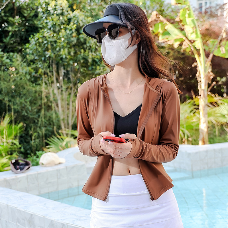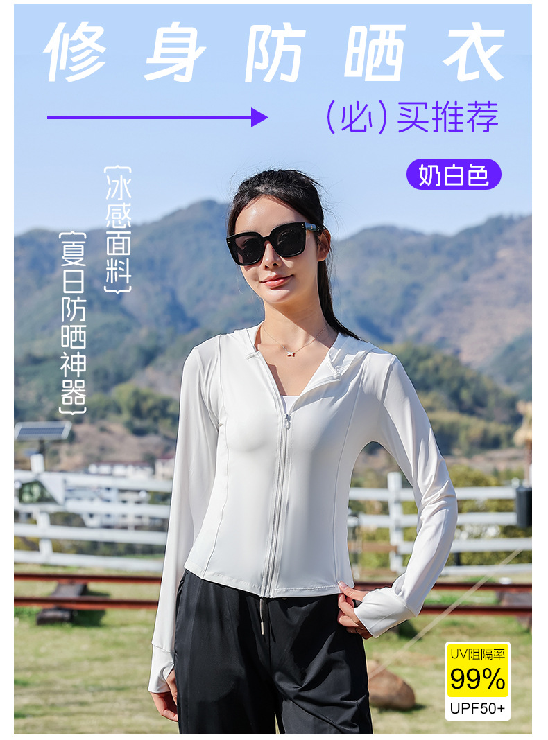 新款小蛮腰修身瑜伽防晒衣夏季骑行披肩外套原纱锦纶冰丝料防晒服
