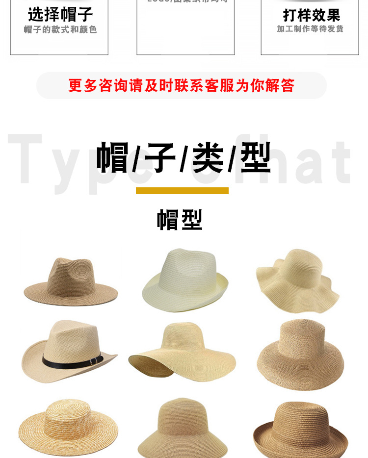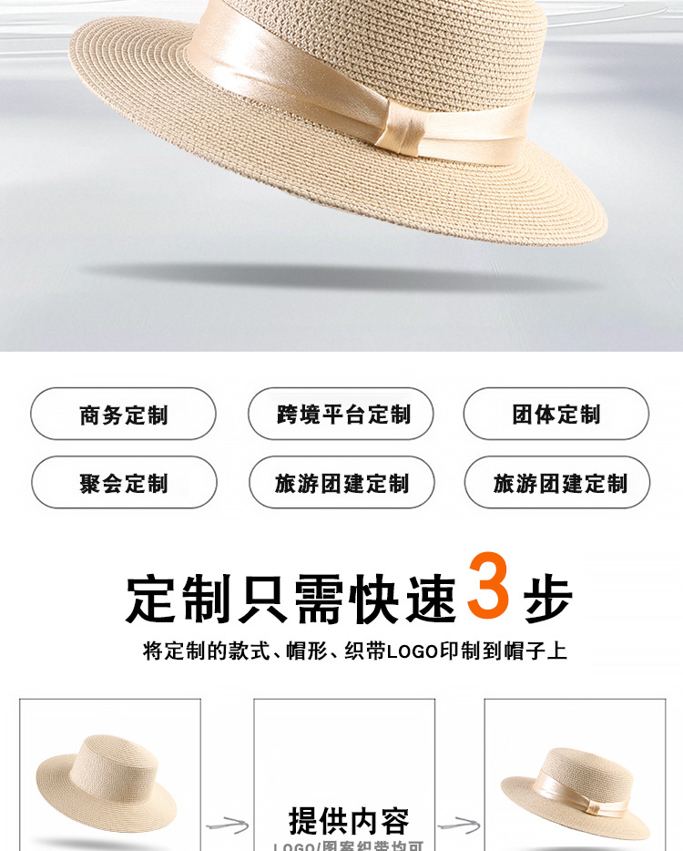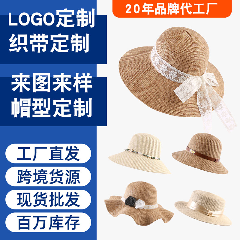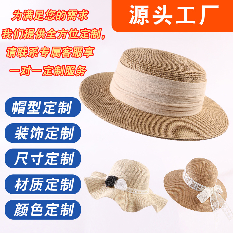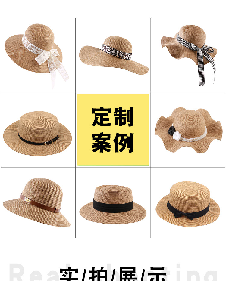 法式麦秆草帽定做可diy大遮帽大帽檐防晒帽手工外贸遮阳草帽定制