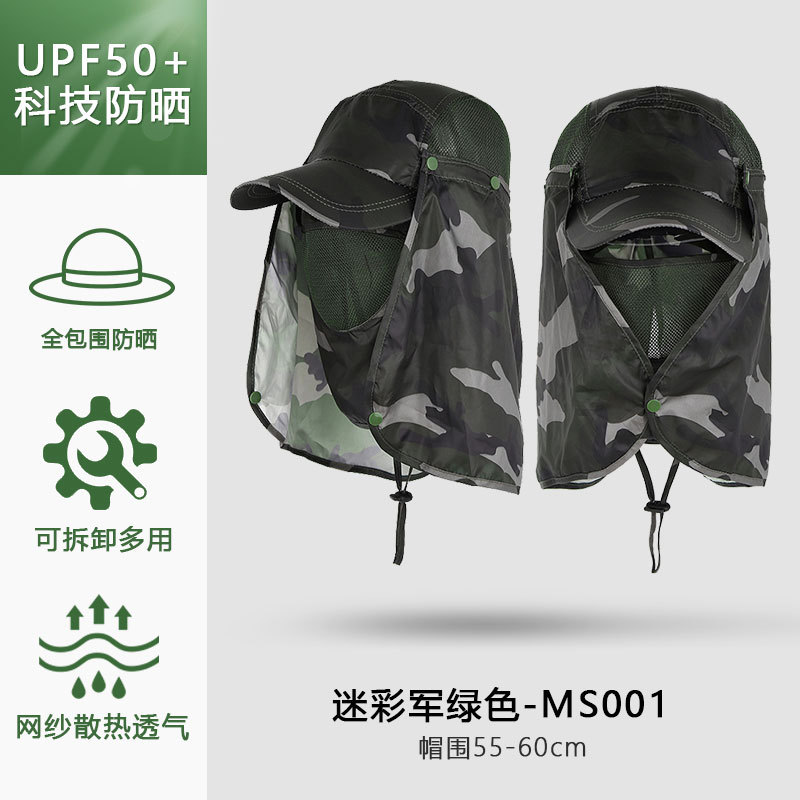 户外遮阳钓鱼帽子男士可拆卸棒球帽速干护脖披风帽夏季防晒登山帽