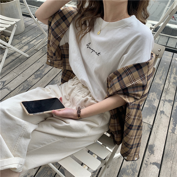 白色短袖T恤女宽松韩版2025新款夏季大版百搭网红盐系上衣服ins潮
