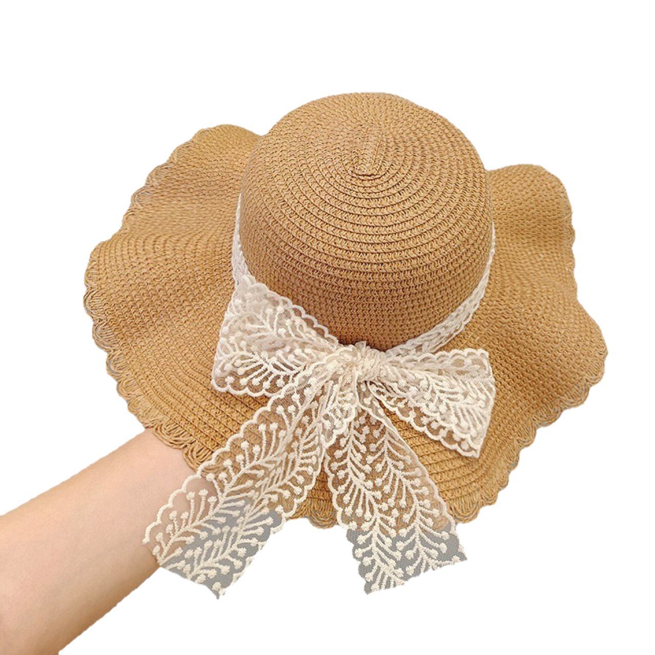 韩版蕾丝蝴蝶结大帽檐草帽女夏季英伦遮阳防晒礼帽沙滩甜美渔夫帽