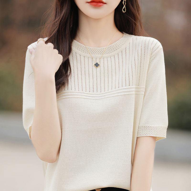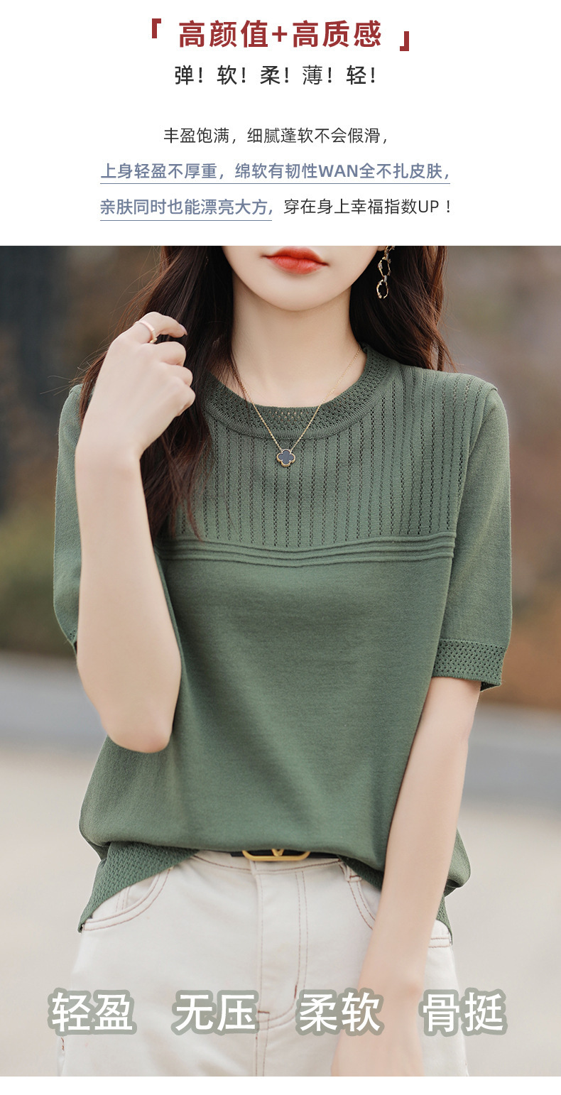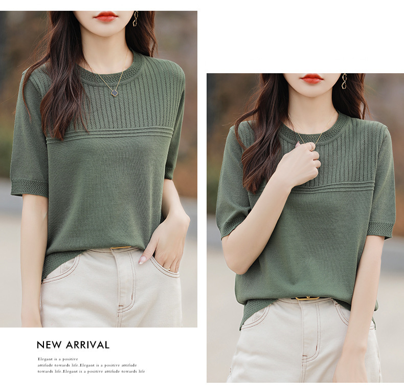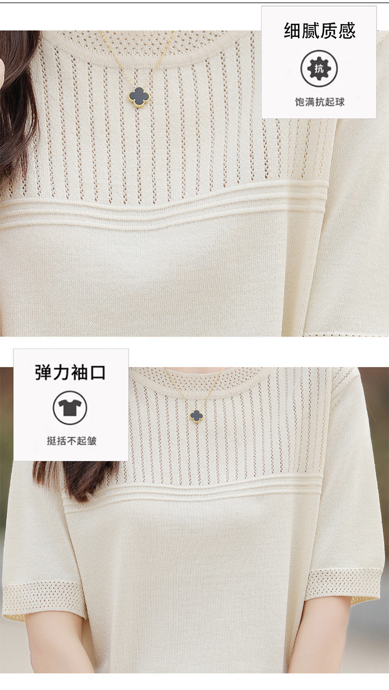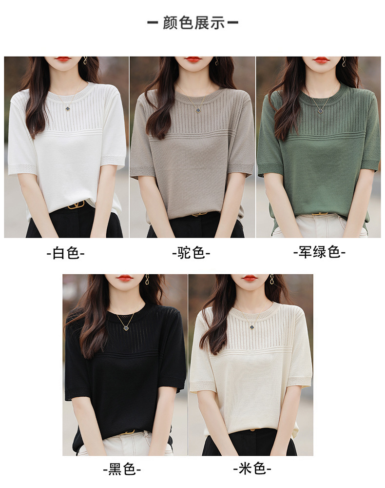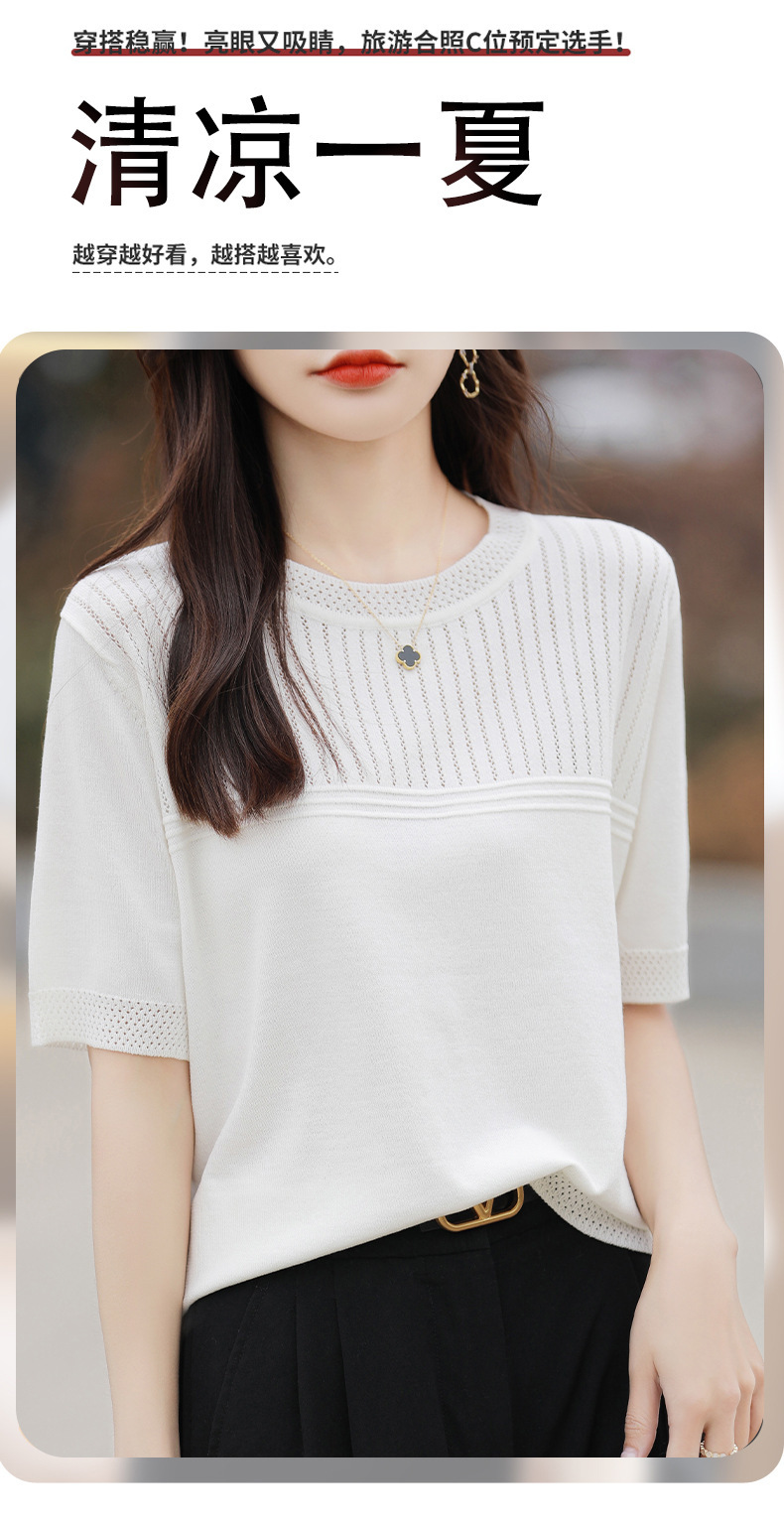 2025夏季新款女装曲珠冰丝短袖针织衫T恤女圆领薄款韩版外贸批发