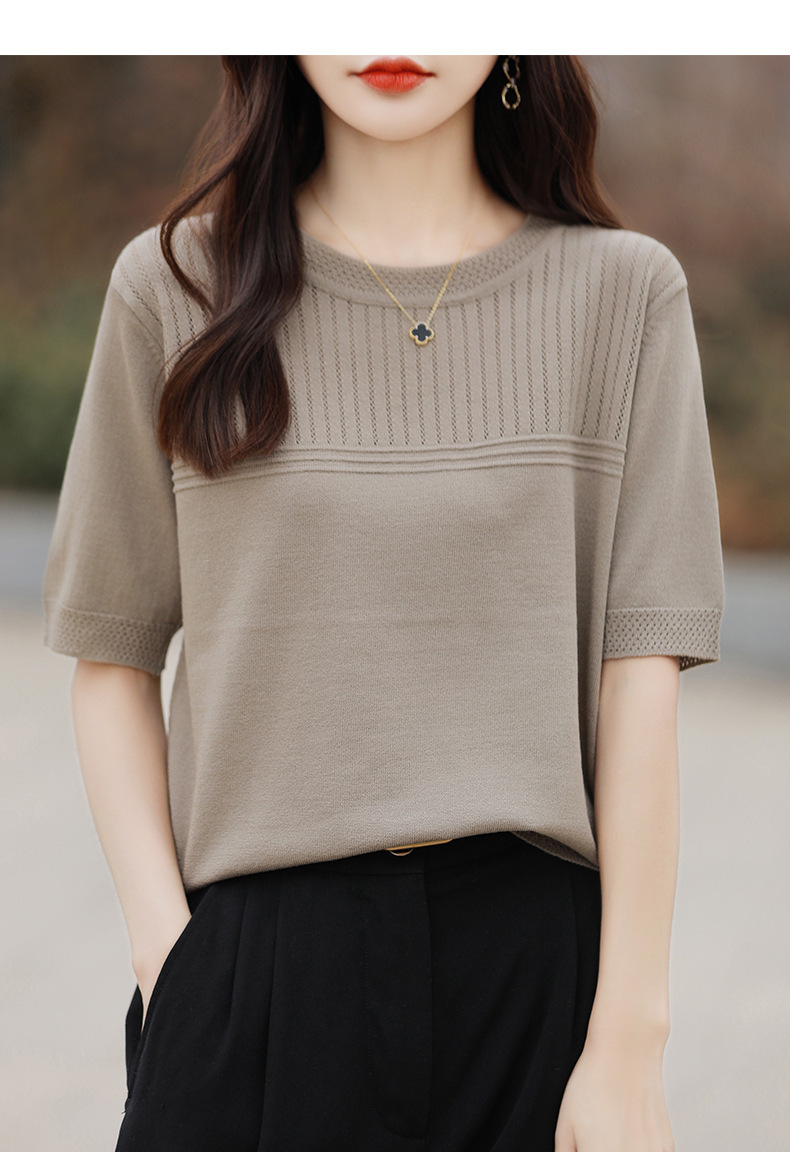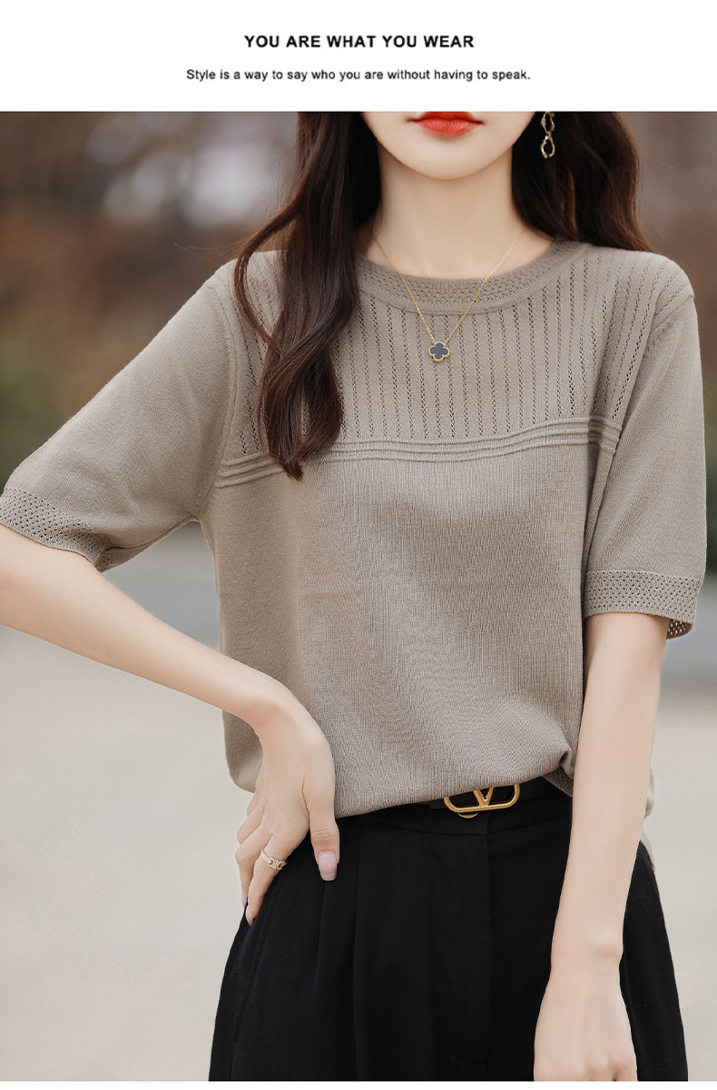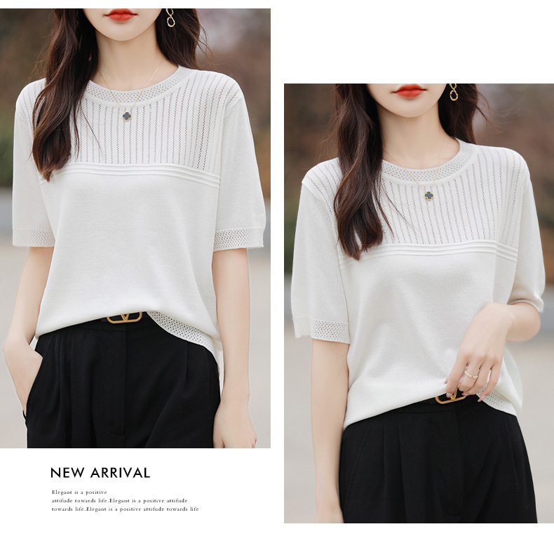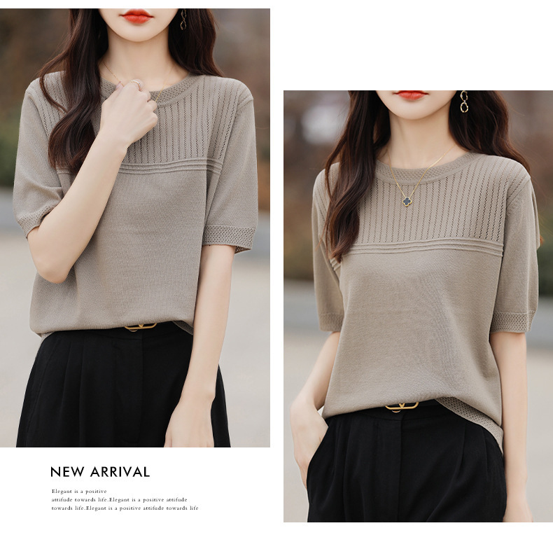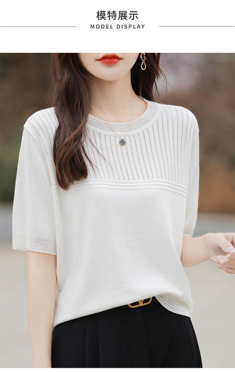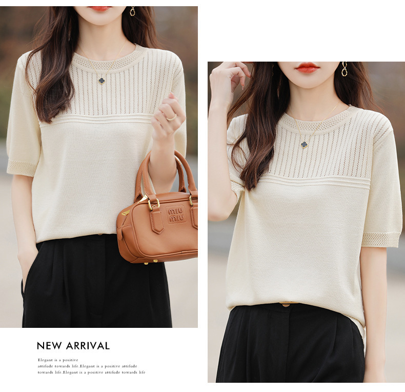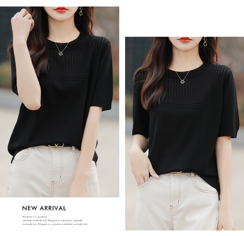 2025夏季新款女装曲珠冰丝短袖针织衫T恤女圆领薄款韩版外贸批发