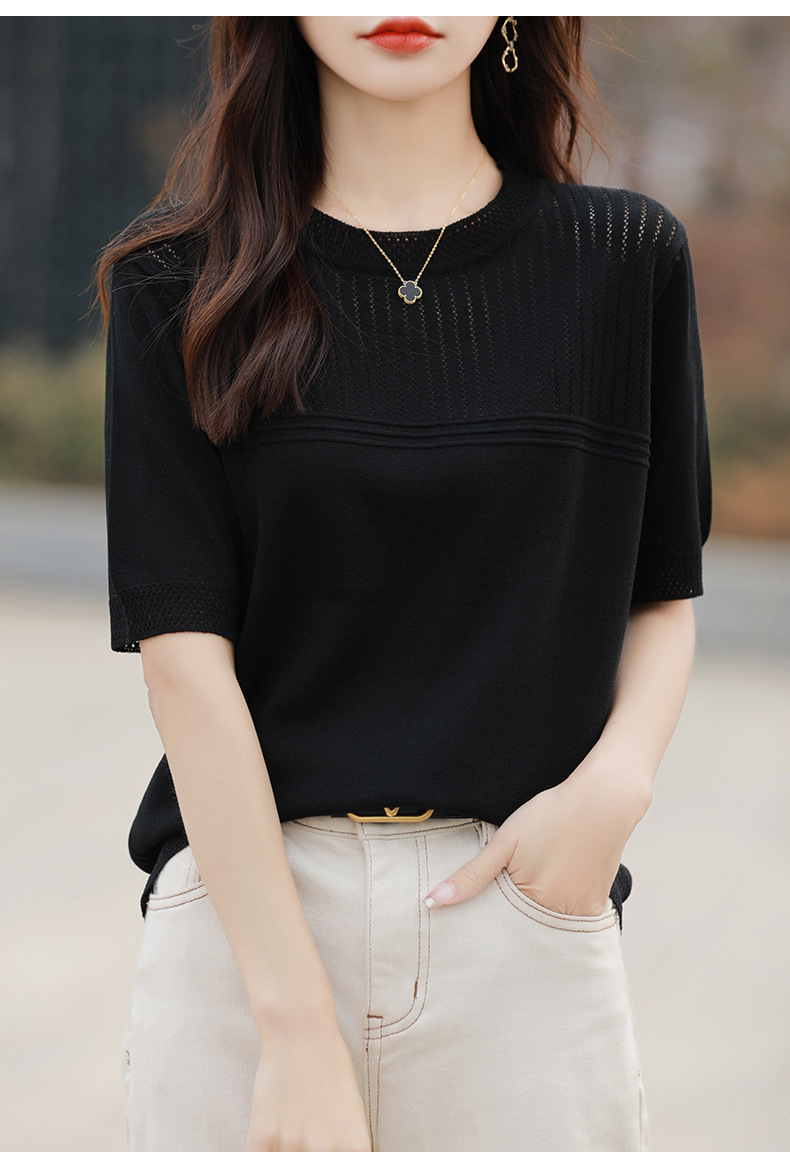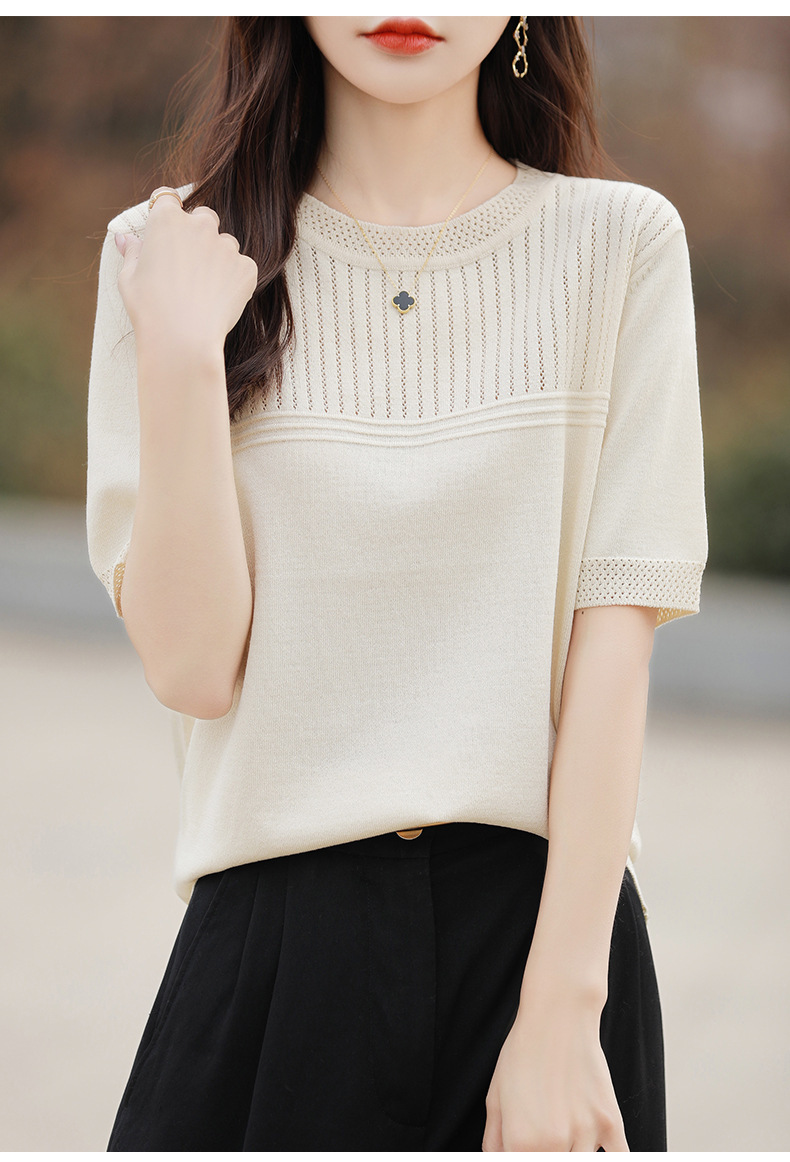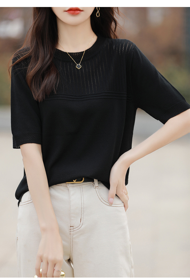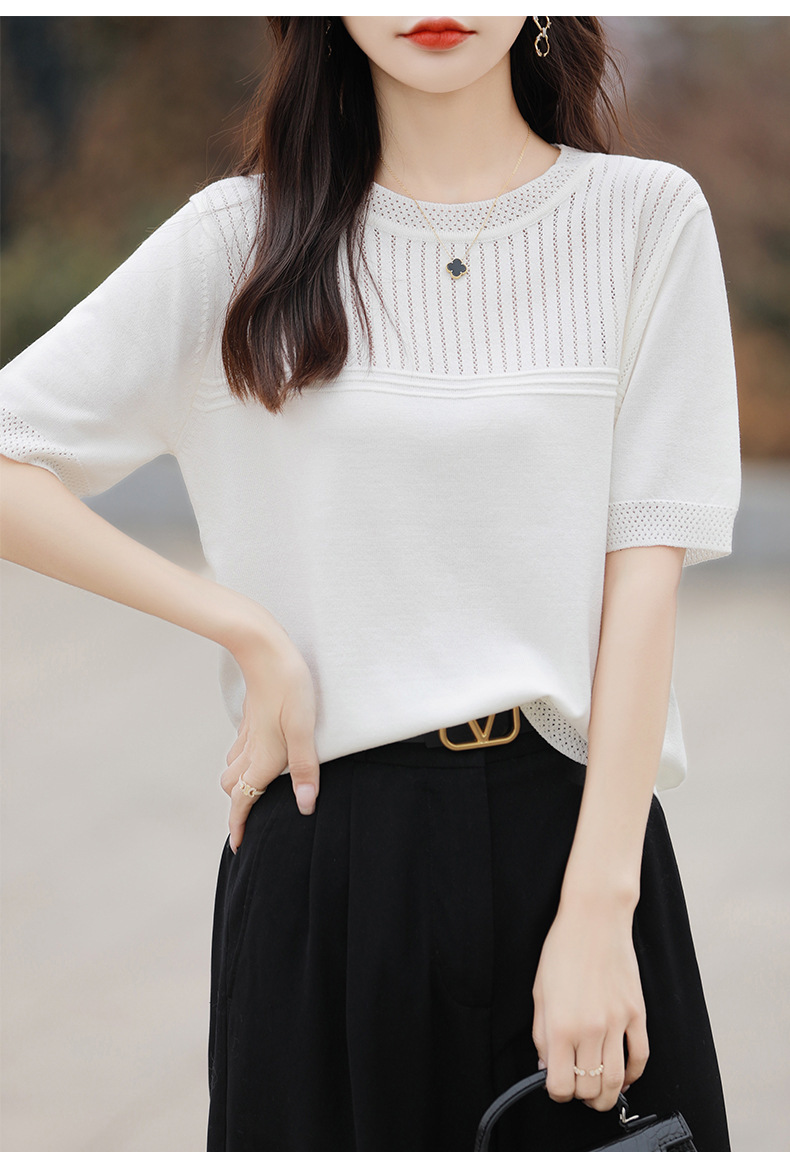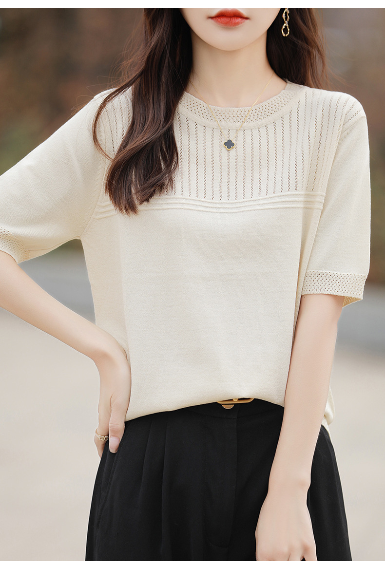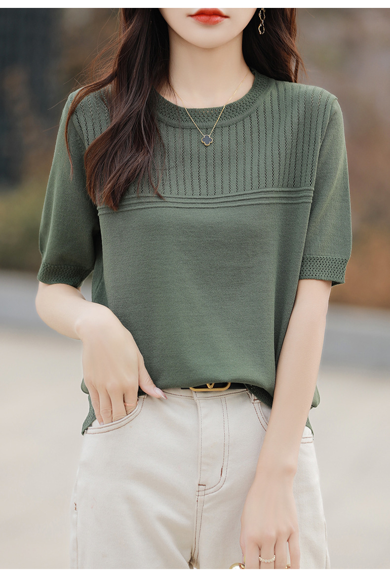 2025夏季新款女装曲珠冰丝短袖针织衫T恤女圆领薄款韩版外贸批发