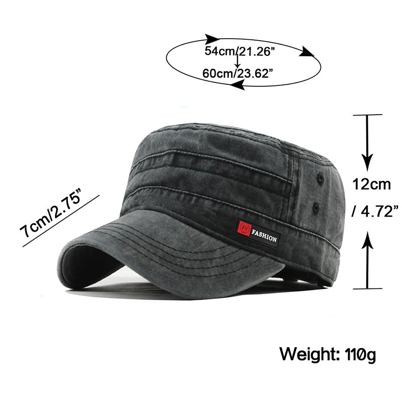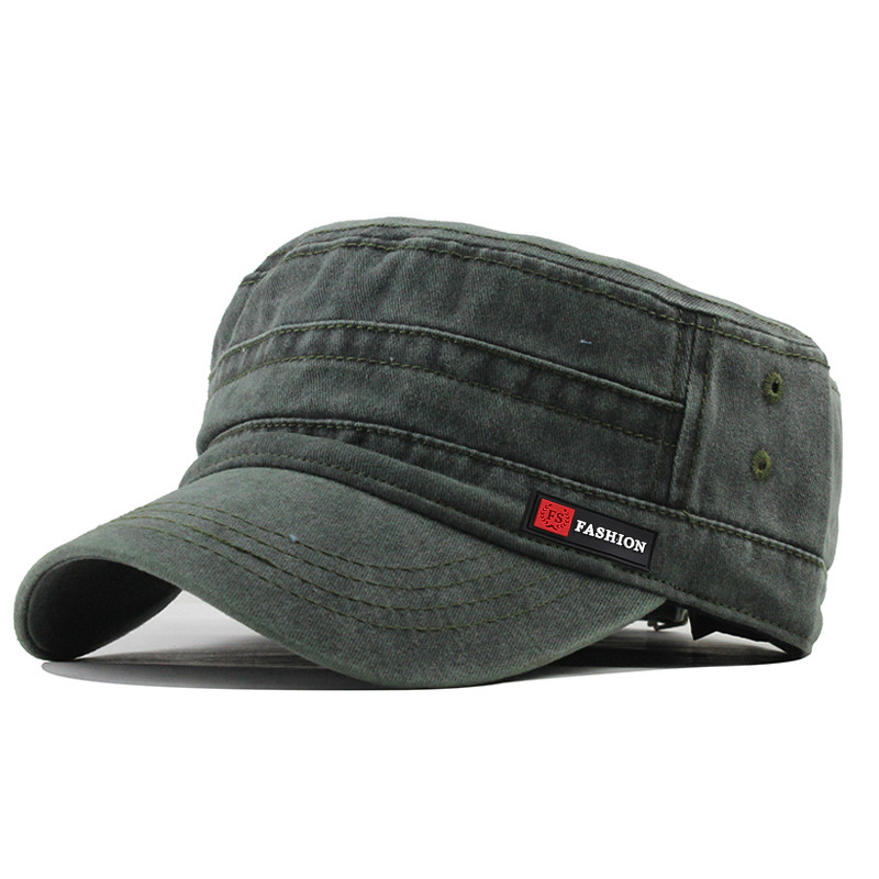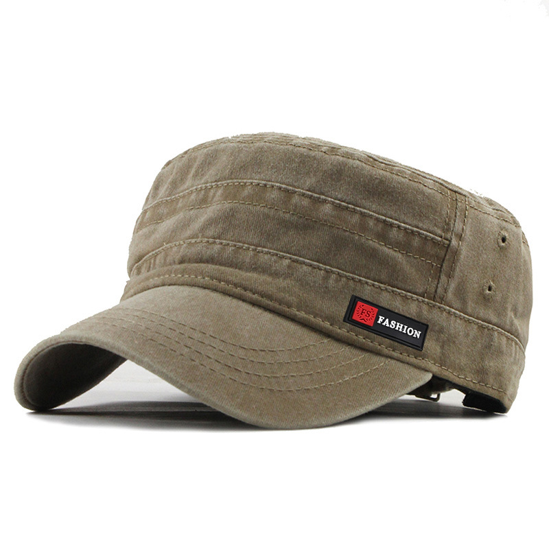 FS皮标水洗帽子批发春夏秋季新款棉布平顶帽户外军帽男网眼遮阳帽