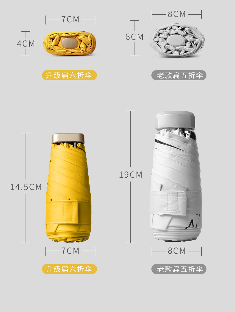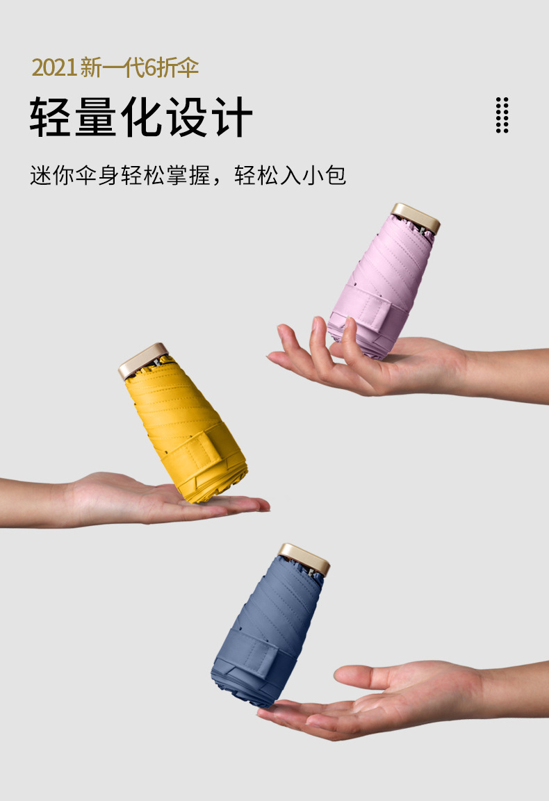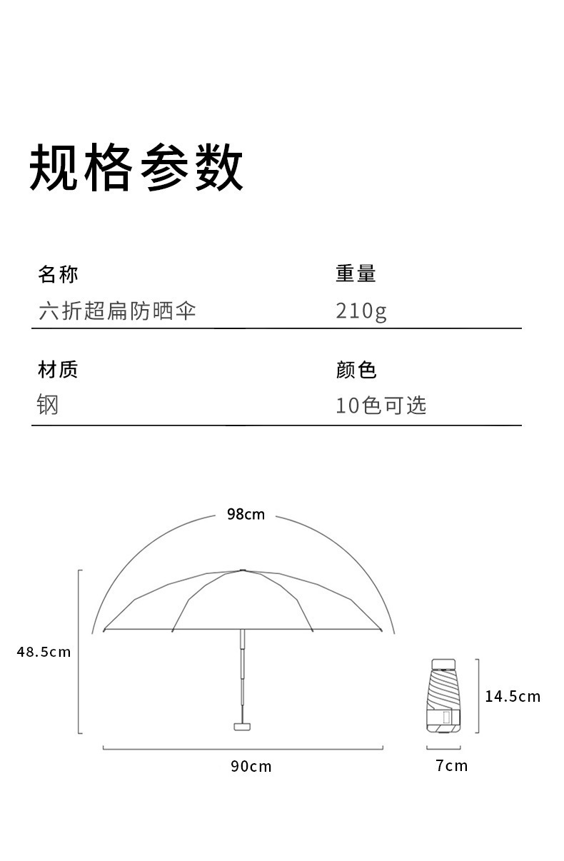 14cm黑胶防晒遮阳伞超轻通用迷你便携折叠太阳伞晴雨两用扁六折伞