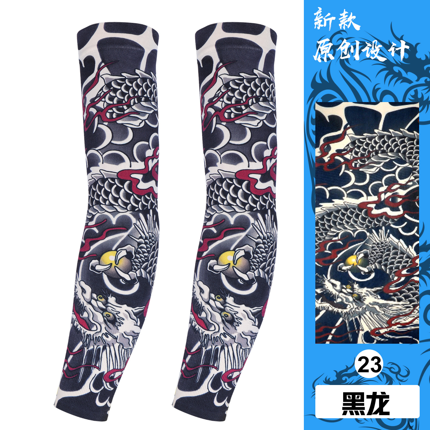 无缝冰丝袖套户外运动纹身袖套花臂刺青防晒套袖护臂韩国骑行批发