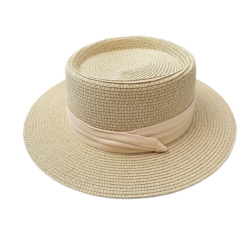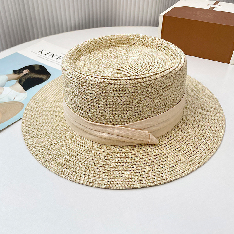 帽子女夏季户外海边大檐防晒遮阳草帽蝴蝶结沙滩帽折叠编织太阳帽