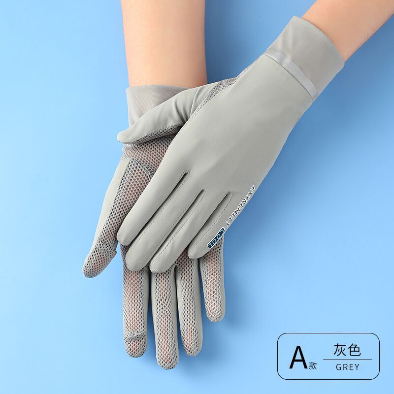 春夏女士防晒手套户外防紫外线冰丝网布二指薄款开车触屏手套批发