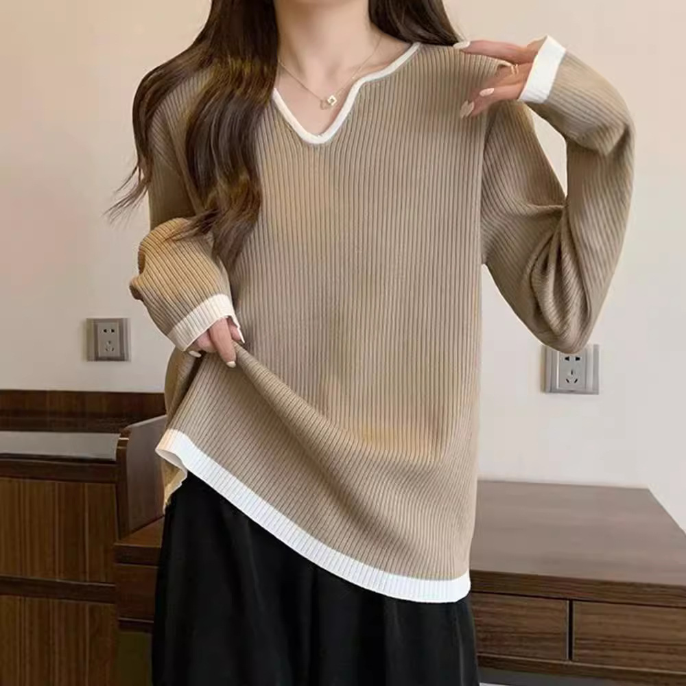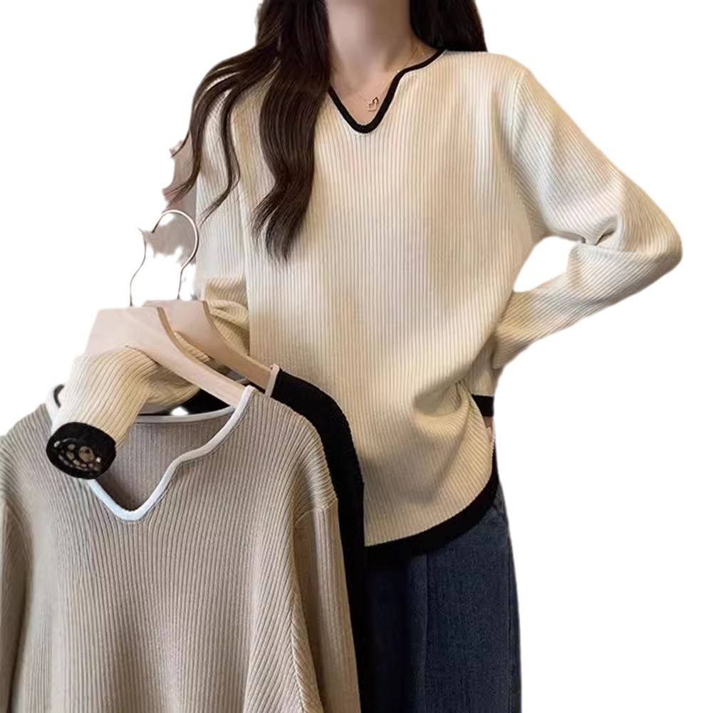 坑条长袖打底衫T恤女春秋冬季内搭新款宽松显瘦大码中长款上衣女