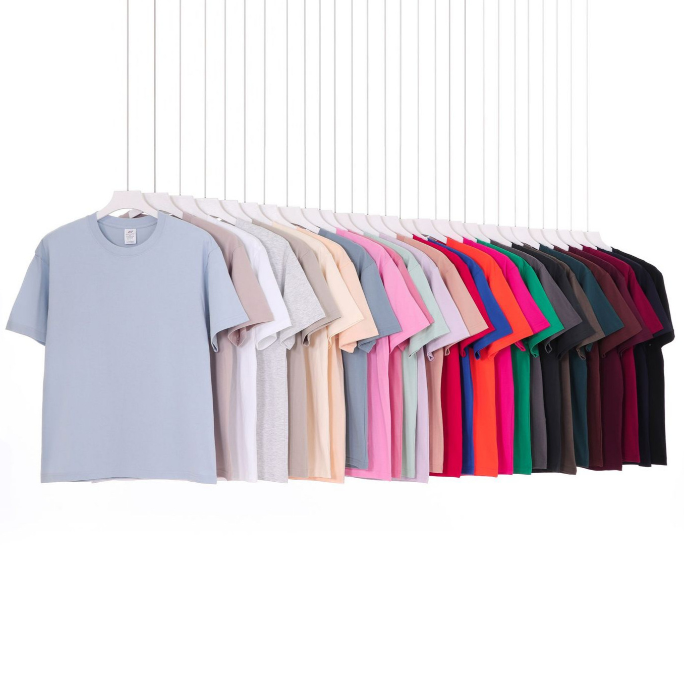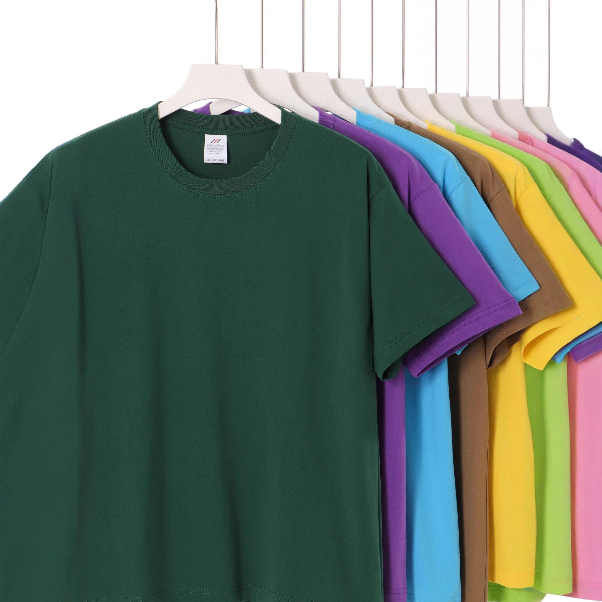 跨境230克重磅纯棉短袖男女体恤纯白色潮牌宽松正肩空白t恤衫批发