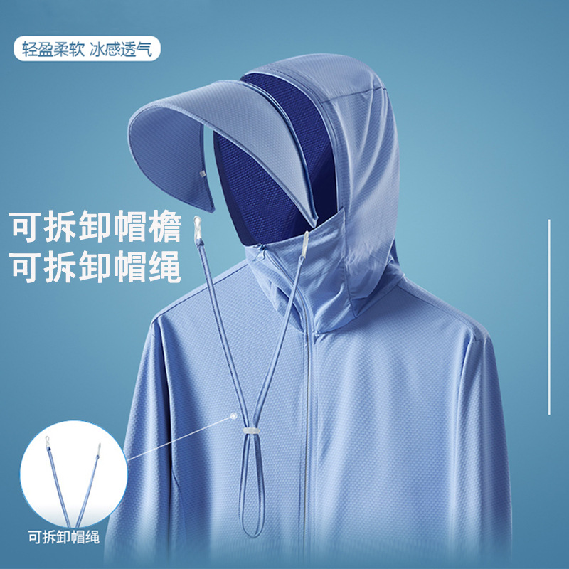 防晒衣UPF50+冰感防紫外线夏季男女薄款透气可拆卸帽檐户外防晒服