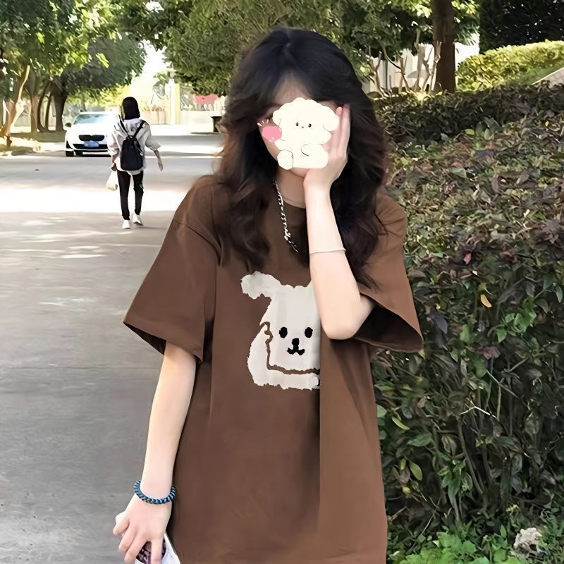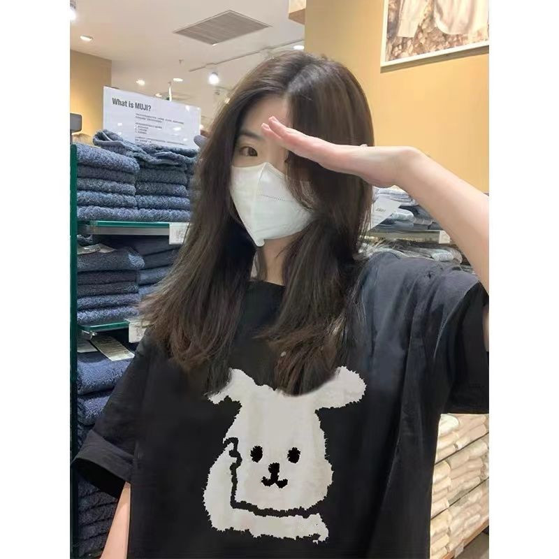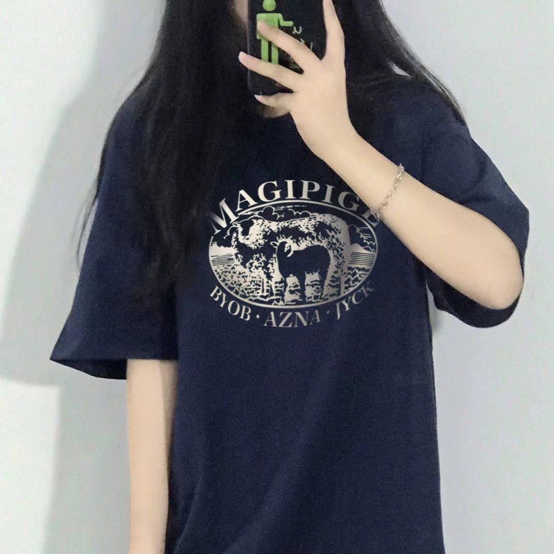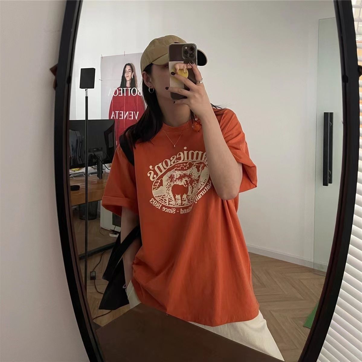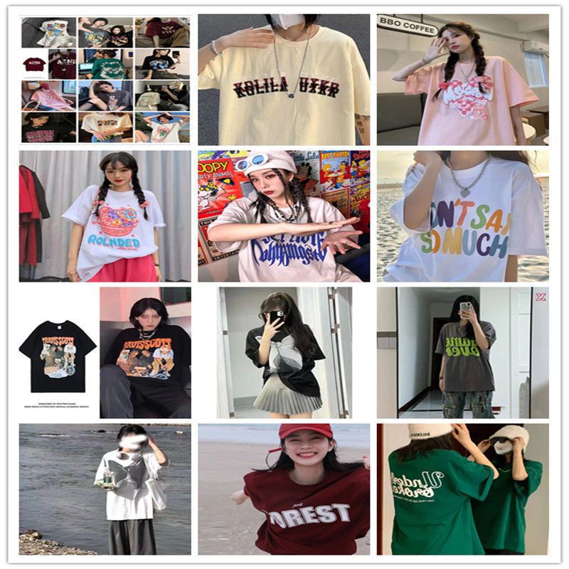 2023重磅纯棉短袖T恤女春夏新款韩版宽松百搭半袖bf港风情侣上衣