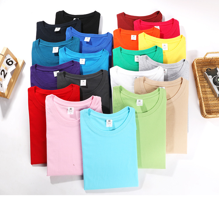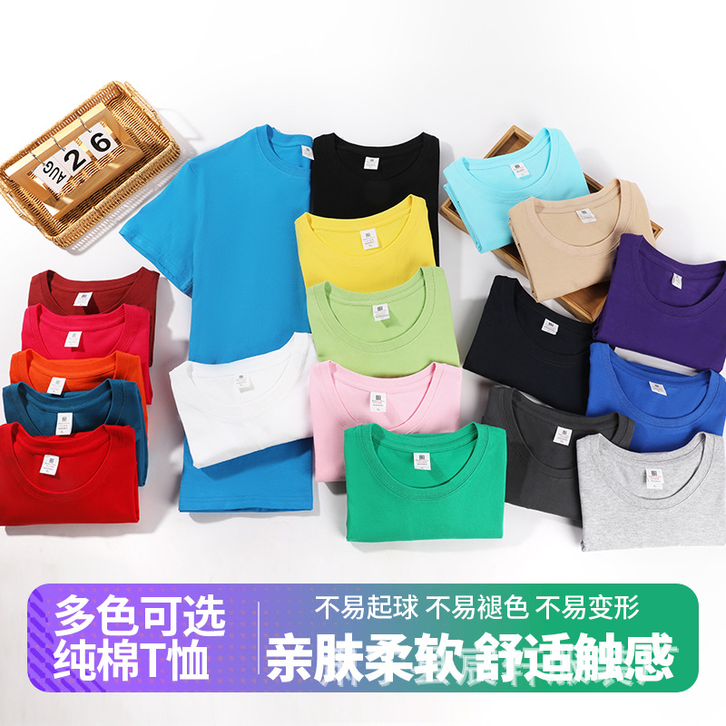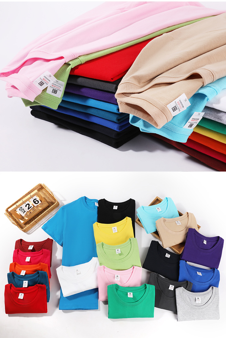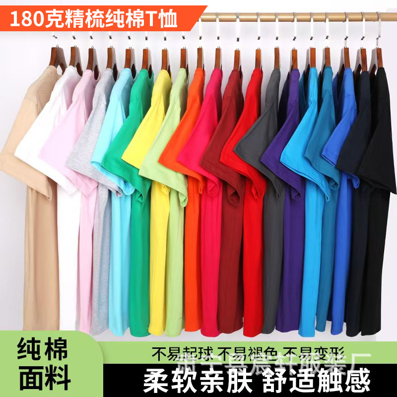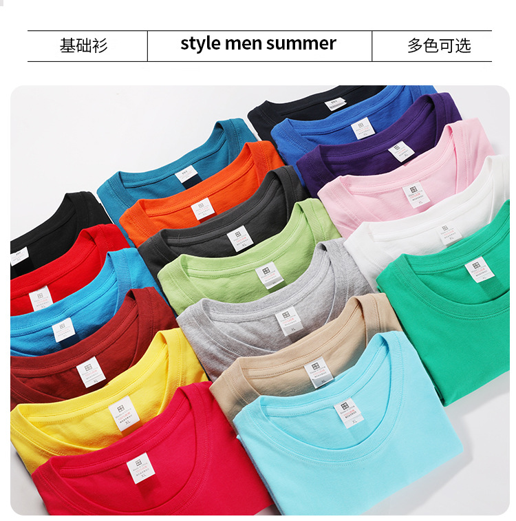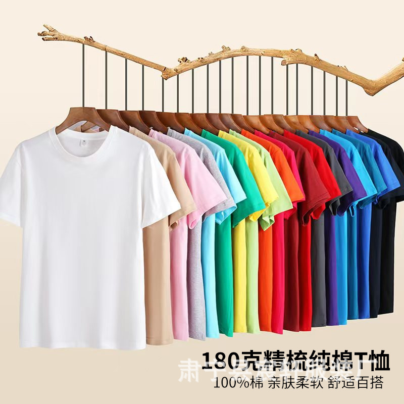 重磅180g精梳纯棉纯色短袖宽松圆领T恤男女打底衫纯棉批发短袖t恤