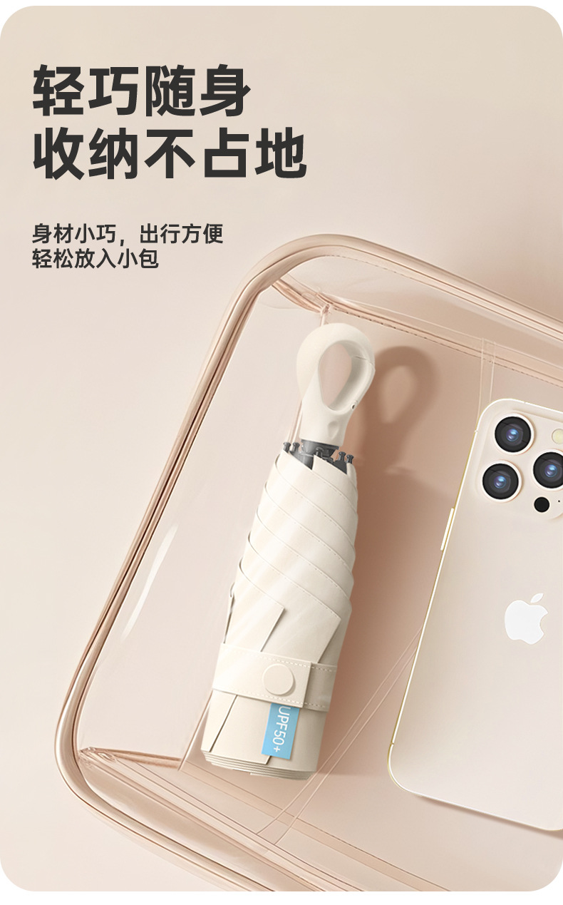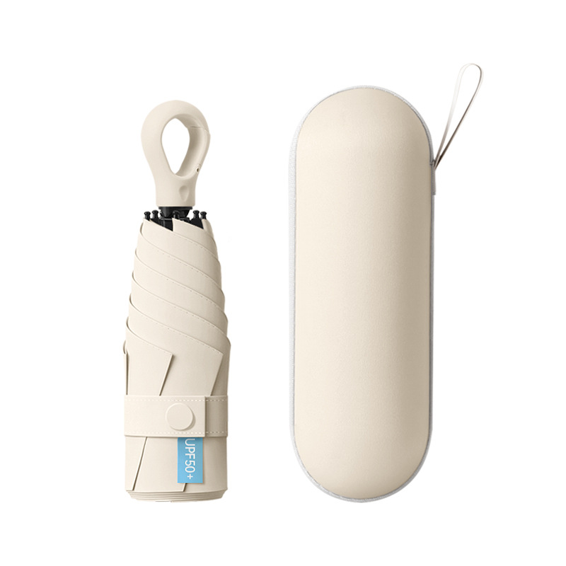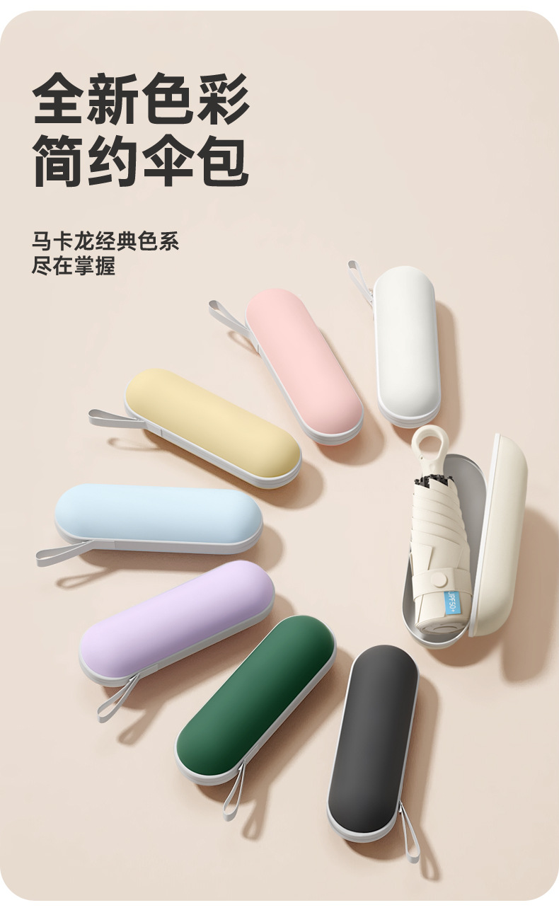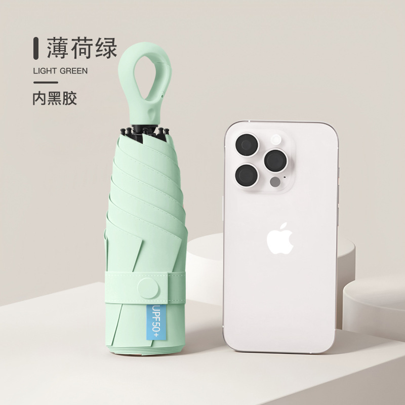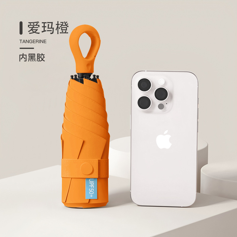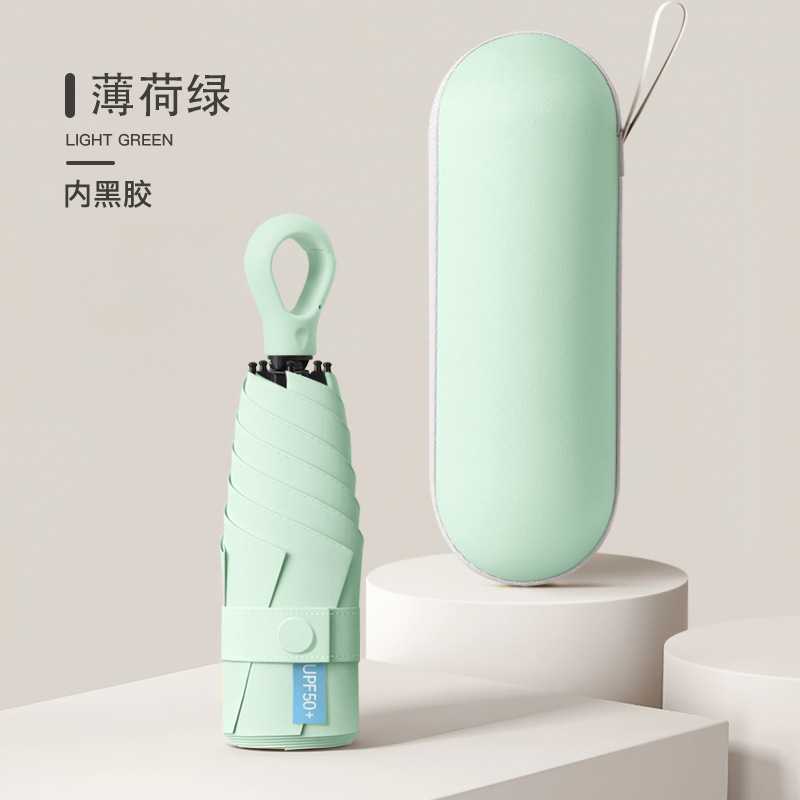 便携五折伞爱心手柄晴雨两用胶囊伞黑胶防晒防紫外线女太阳伞现货