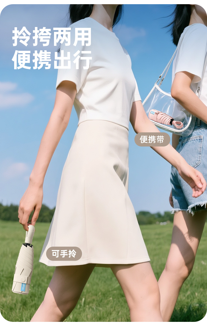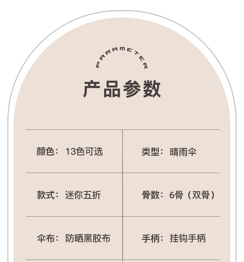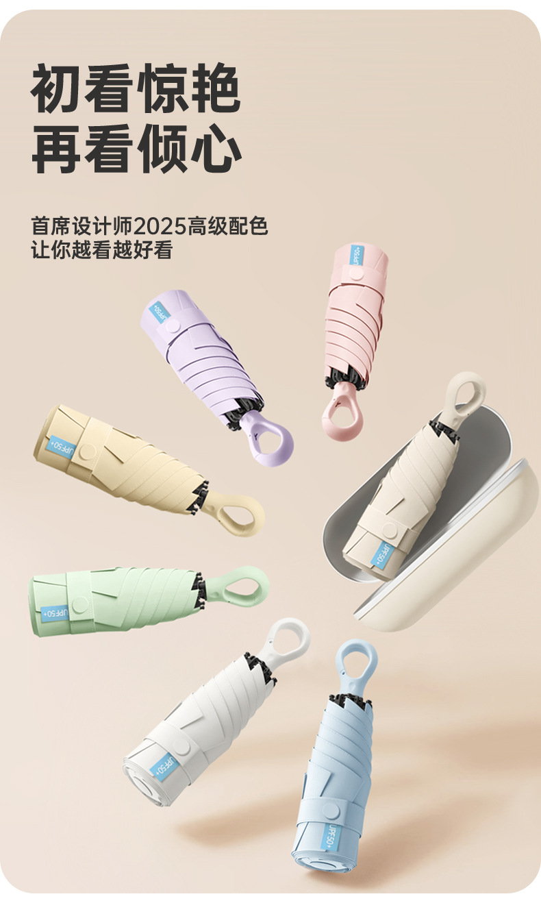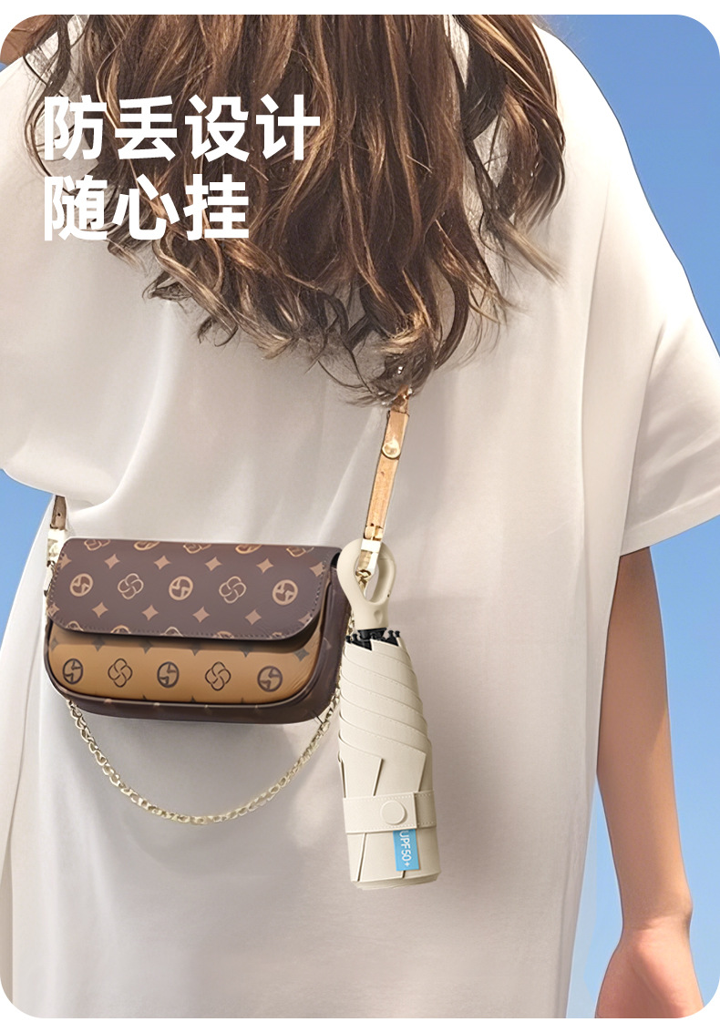 便携五折伞爱心手柄晴雨两用胶囊伞黑胶防晒防紫外线女太阳伞现货