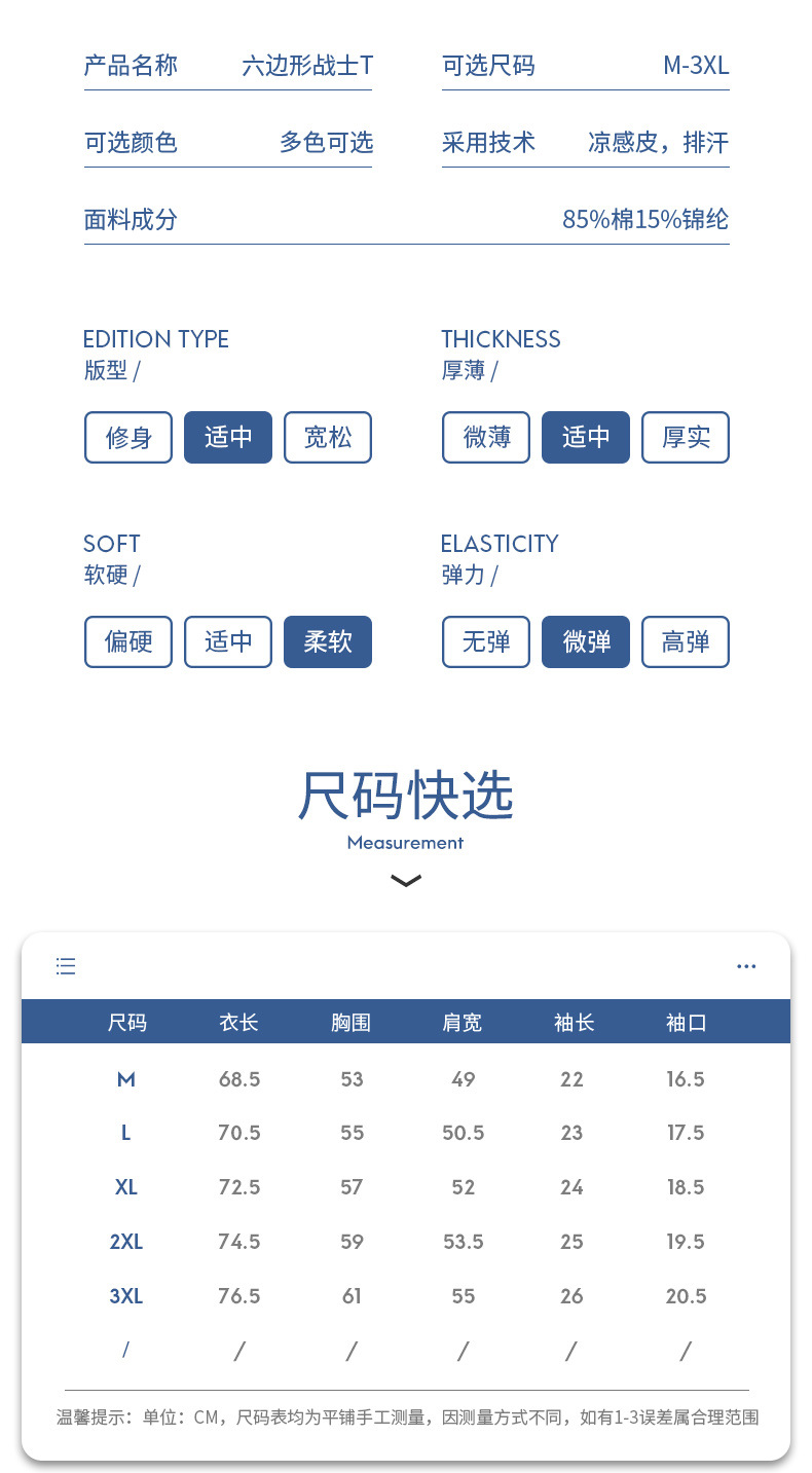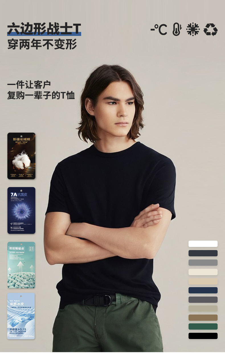 【六边形战士T】40支长绒棉索罗拉sorona凉感抗皱纯色男女短袖T恤