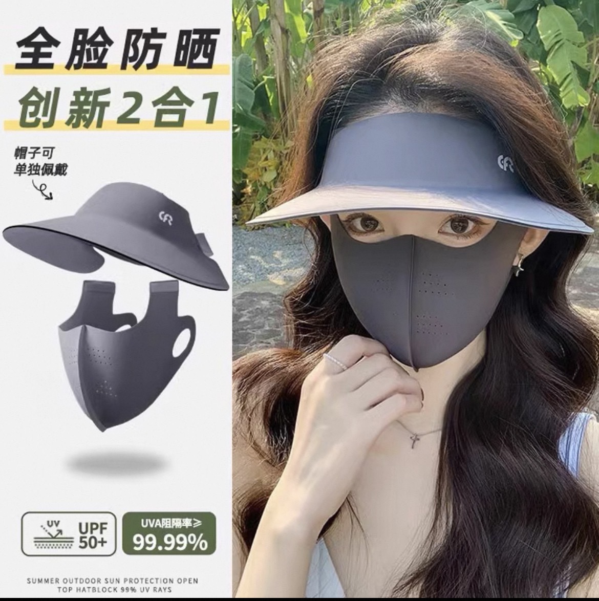 无痕一体防晒帽女脸基尼防紫外线新款遮阳帽骑行运动遮全脸可拆卸