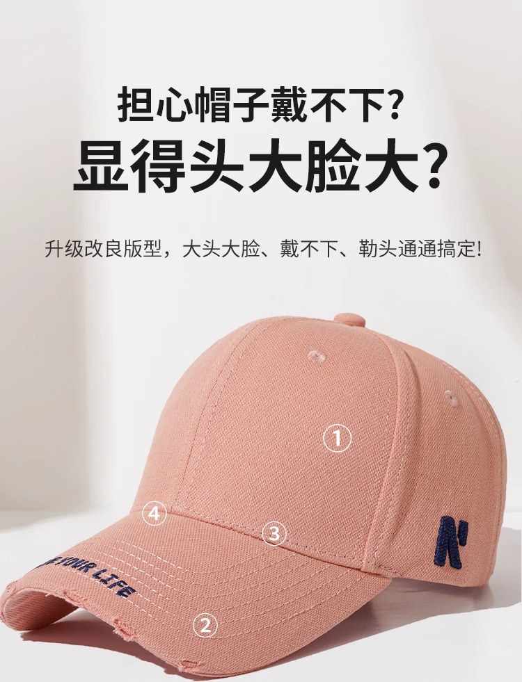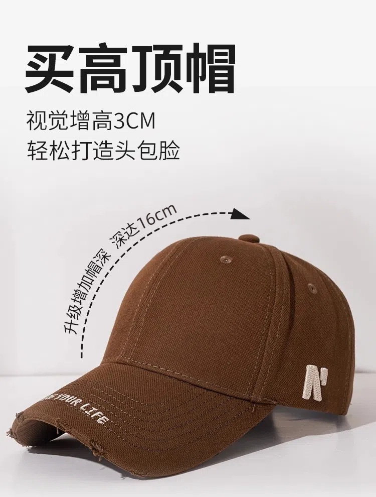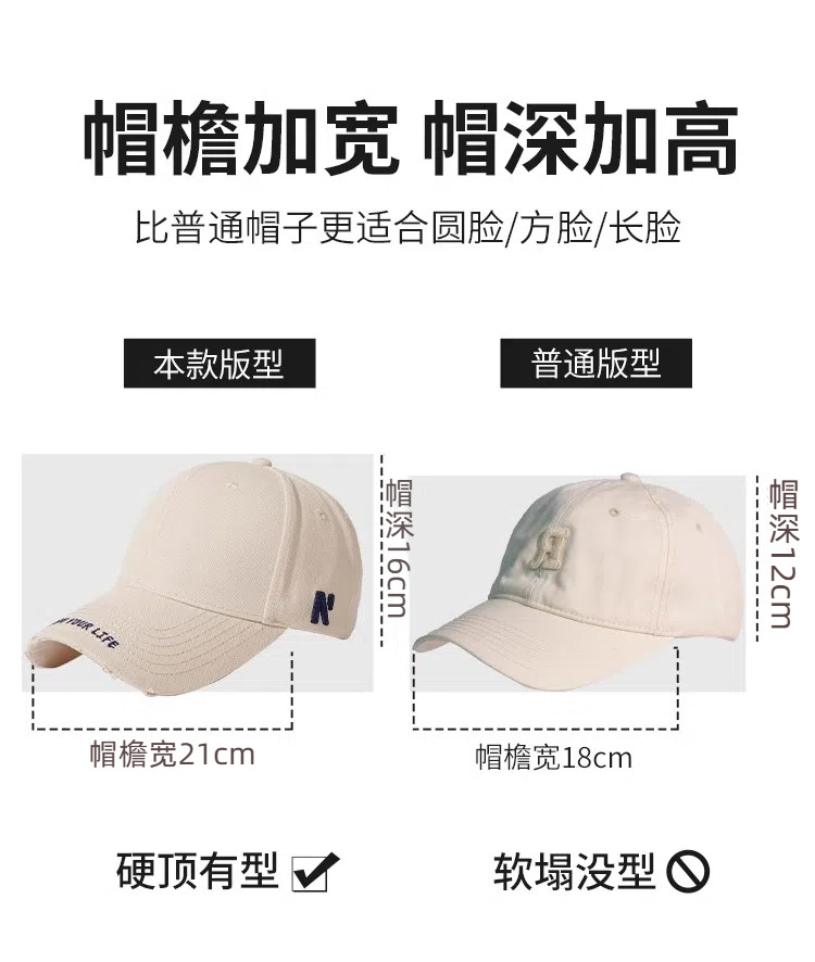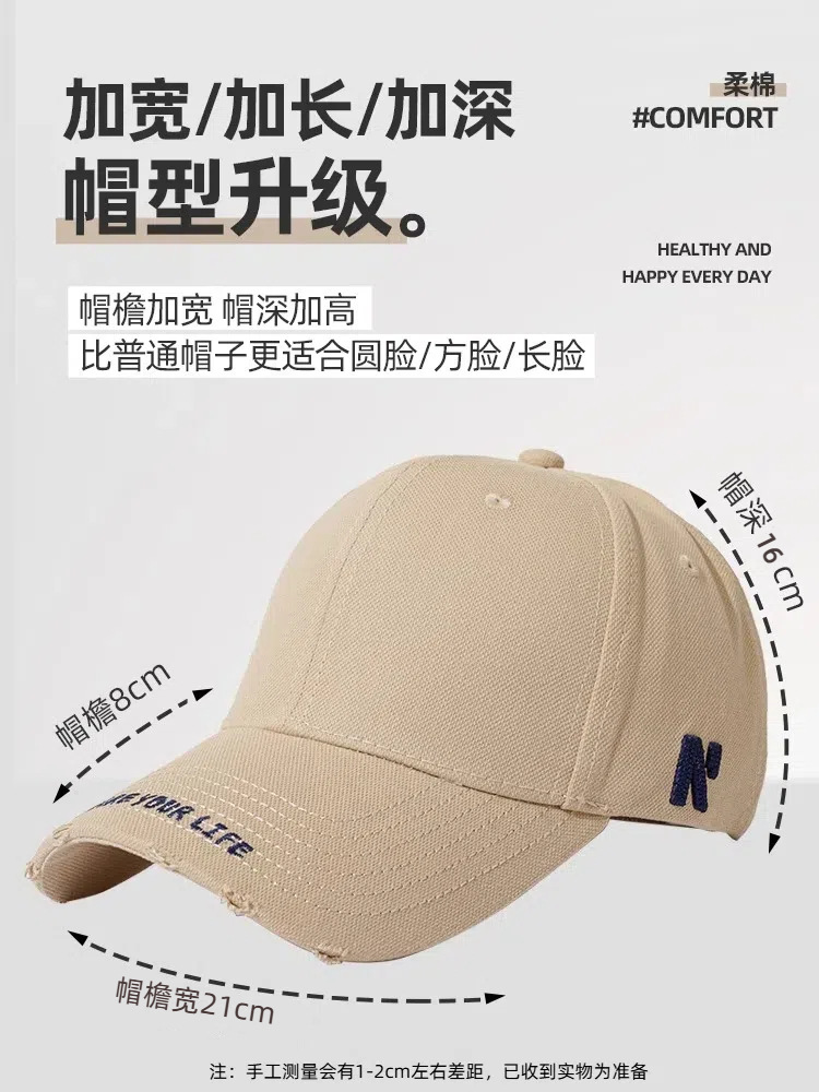 美式棒球帽女显脸小鸭舌帽男潮牌ins复古帽子加大加深硬顶宽帽檐