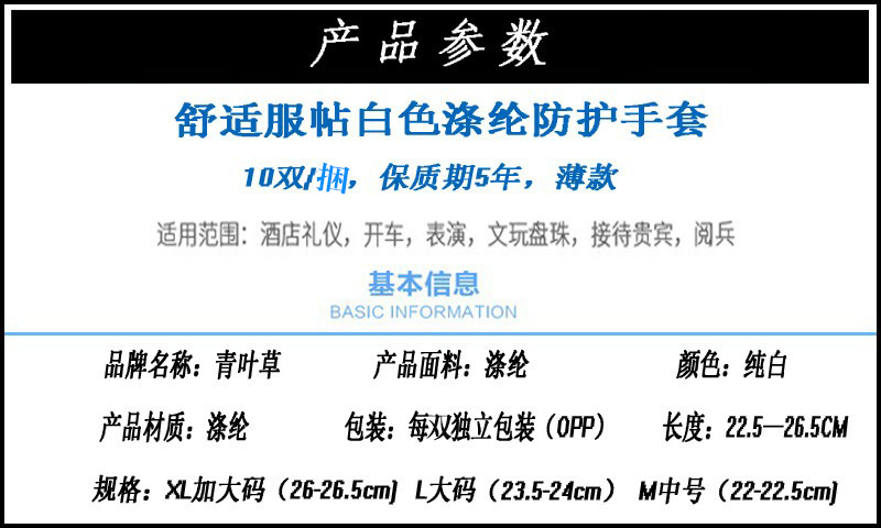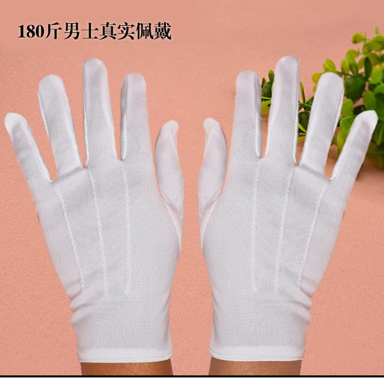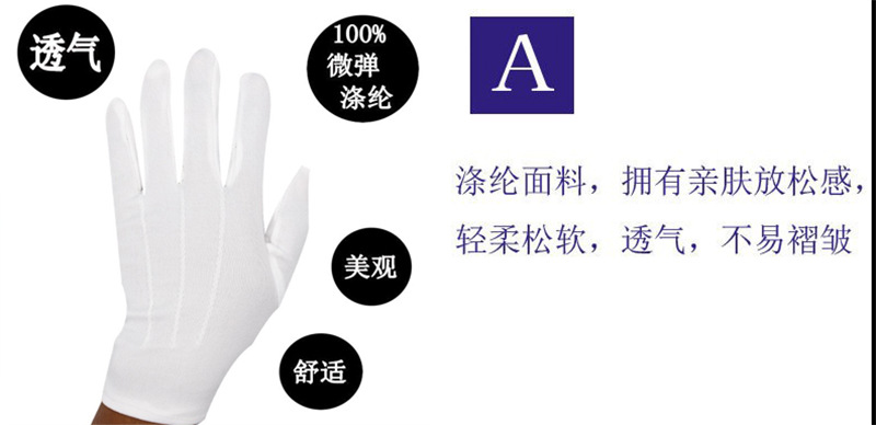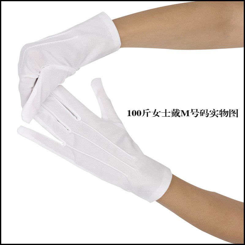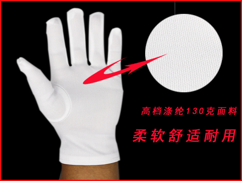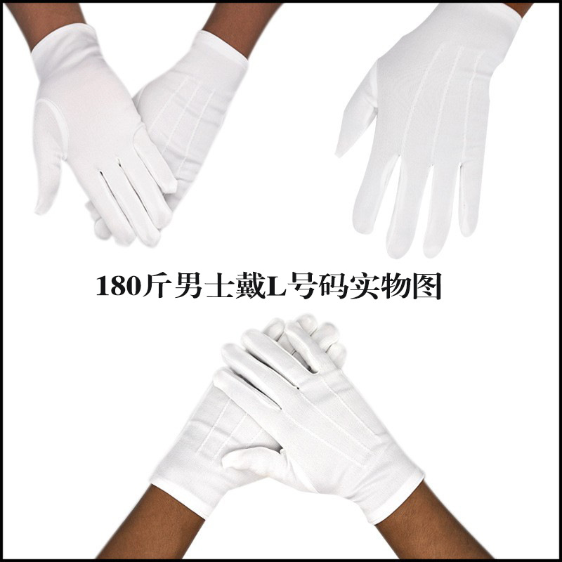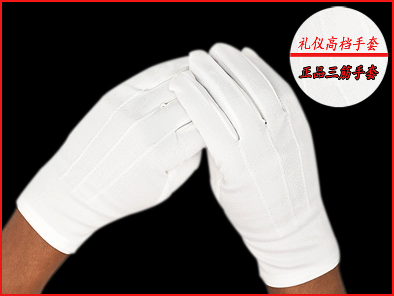 白色成人手背三根拉筋男女表演司机升旗接待开车防晒涤纶礼仪手套