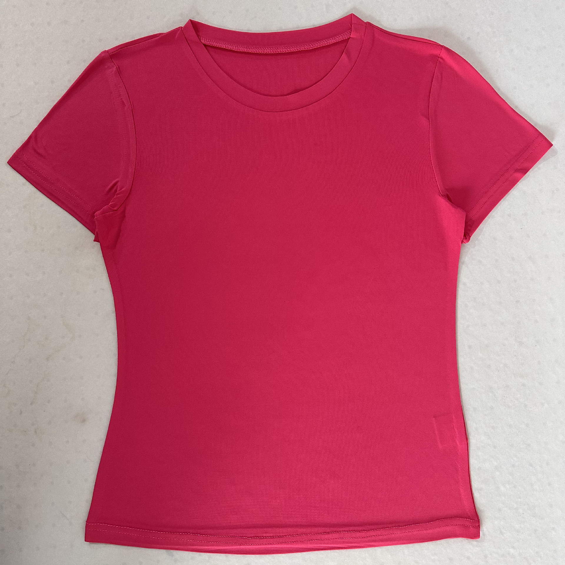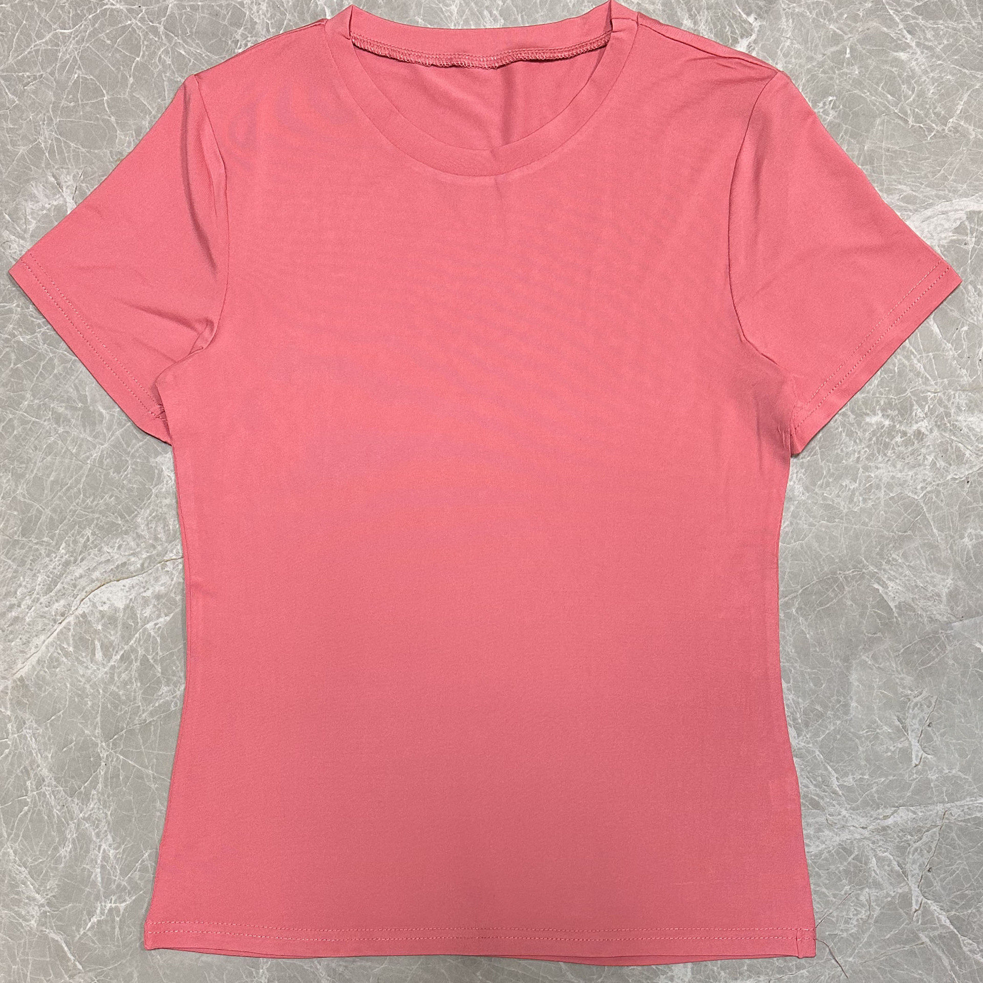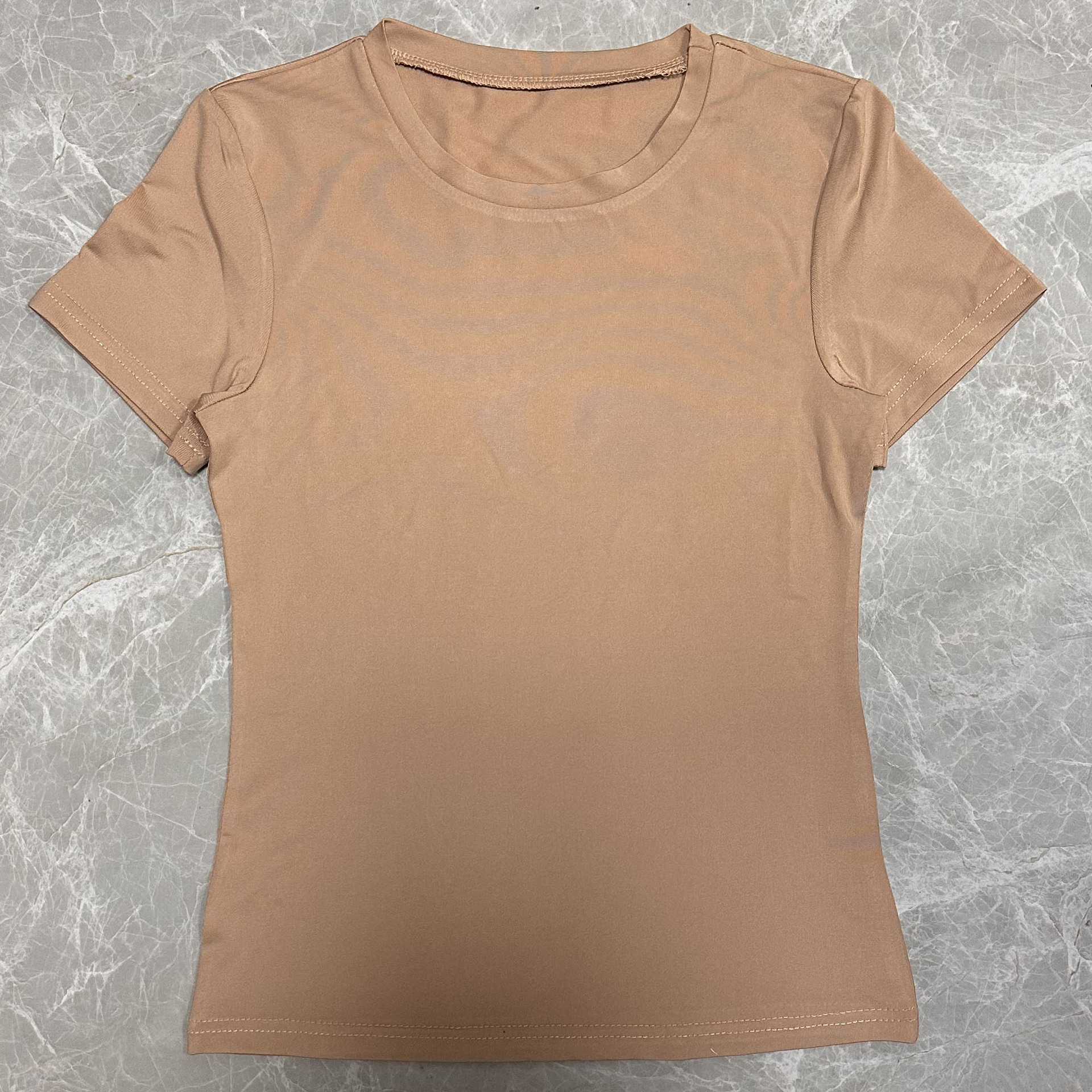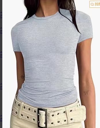 欧美女装休闲短袖t恤春秋纯色修身套头衫t恤女街装打底衫上衣
