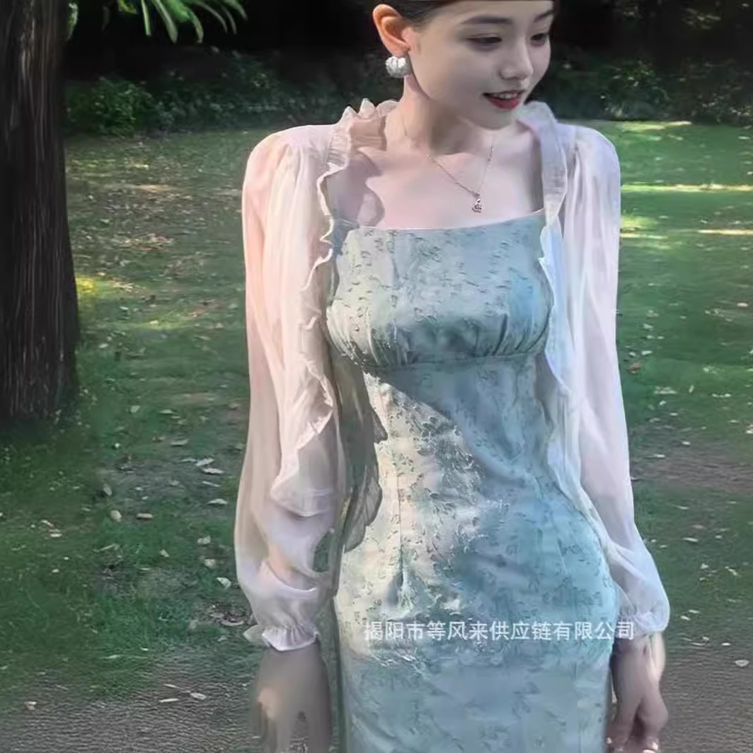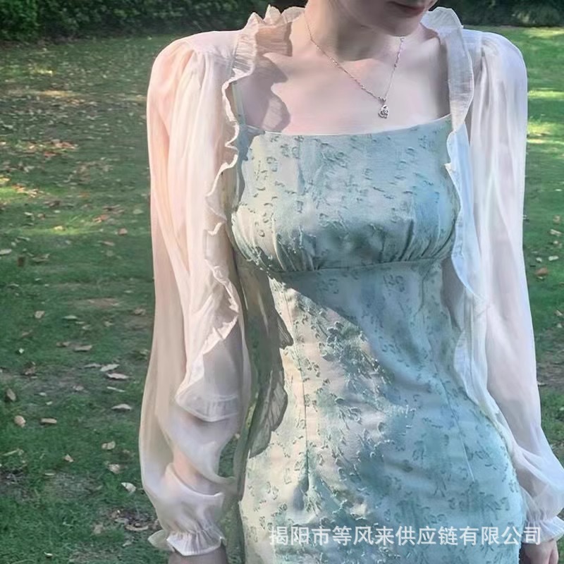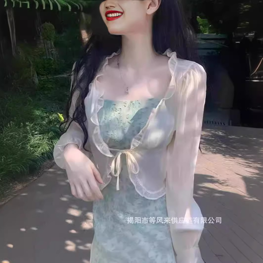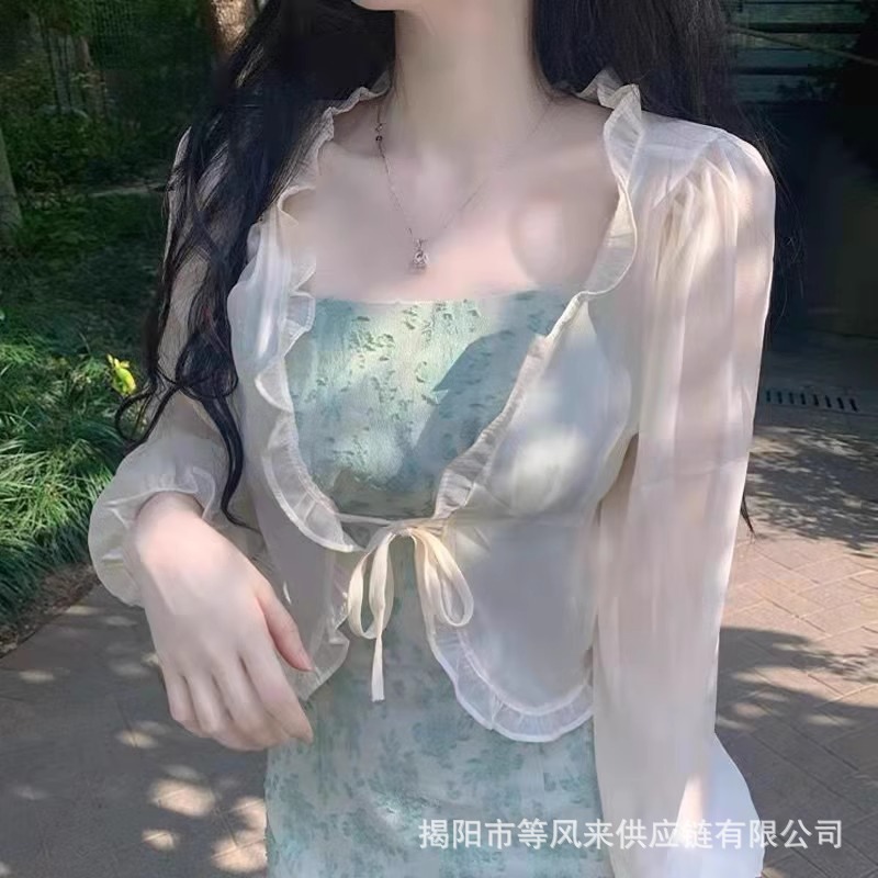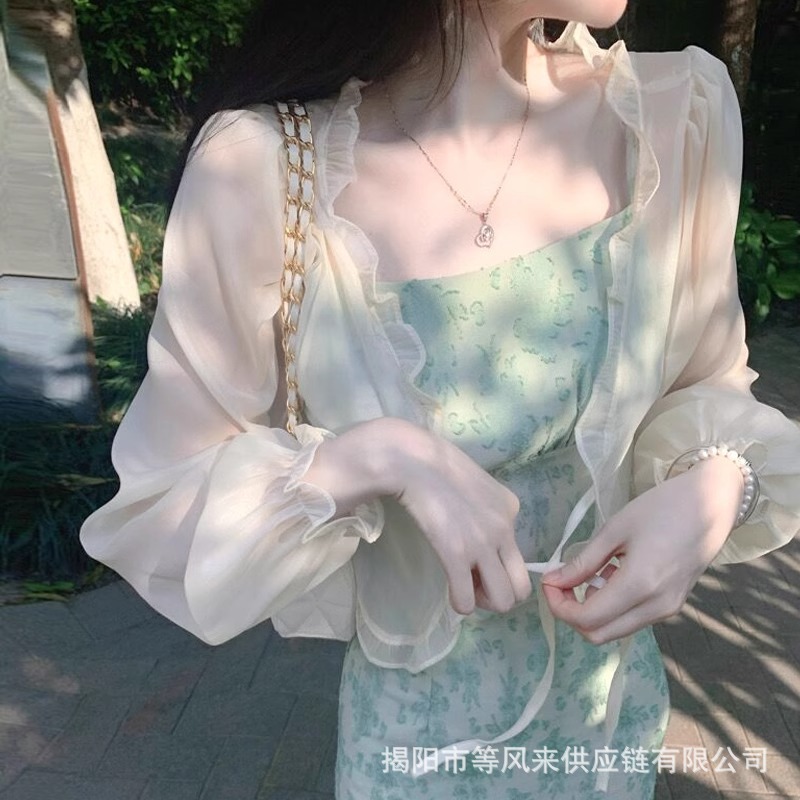 超仙气雪纺衫防晒衣女吊带外搭罩衫小外套薄款披肩夏季配裙子坎肩