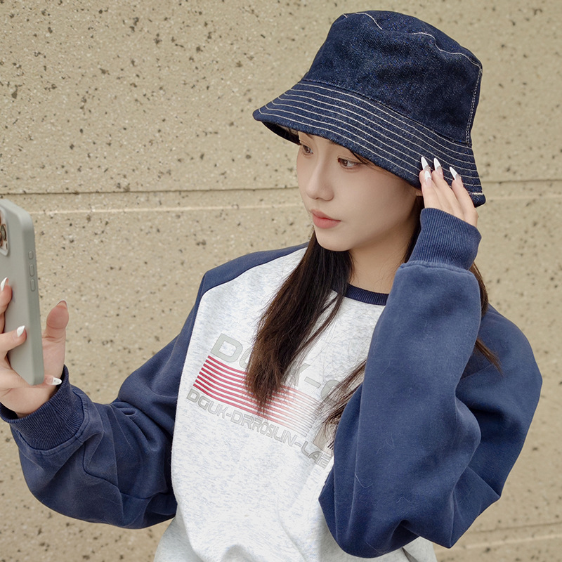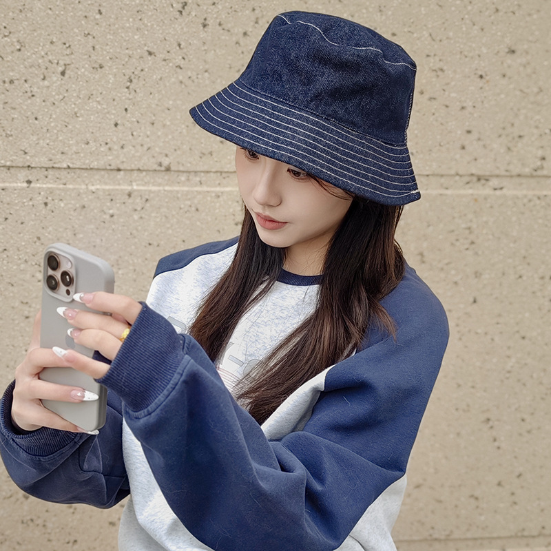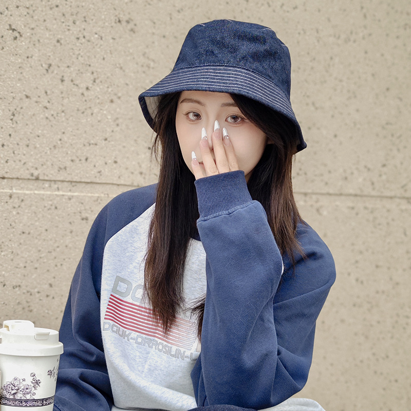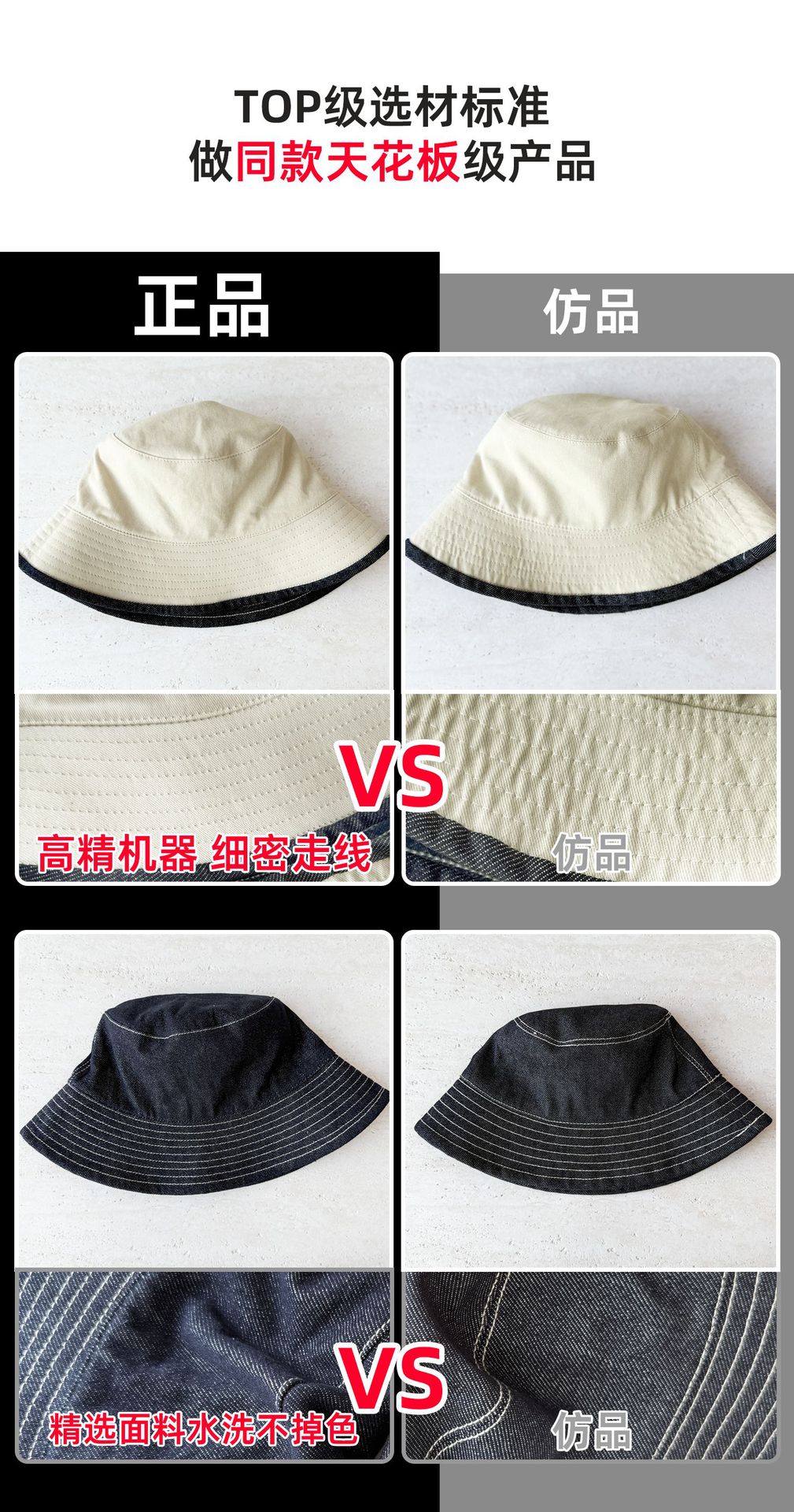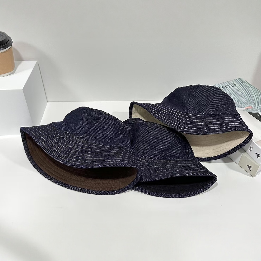 批发双面牛仔渔夫帽日系光板太阳帽女高级感度假 盆帽防晒 遮阳帽
