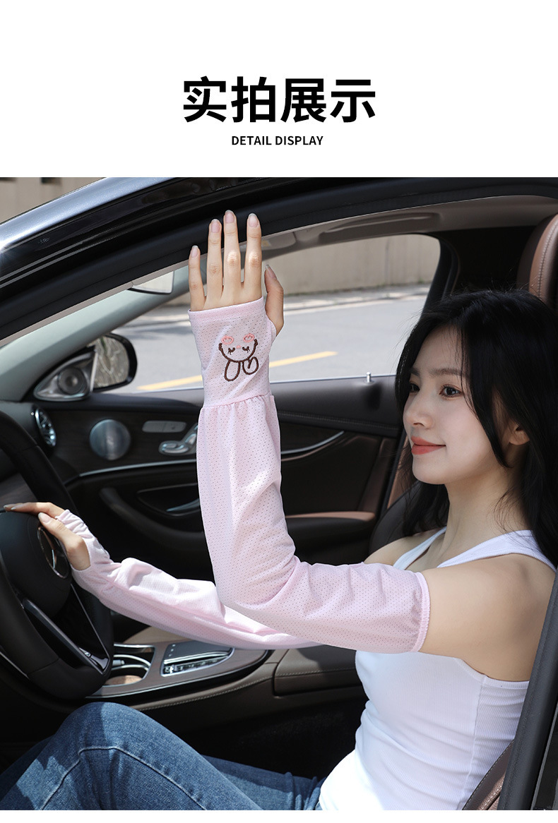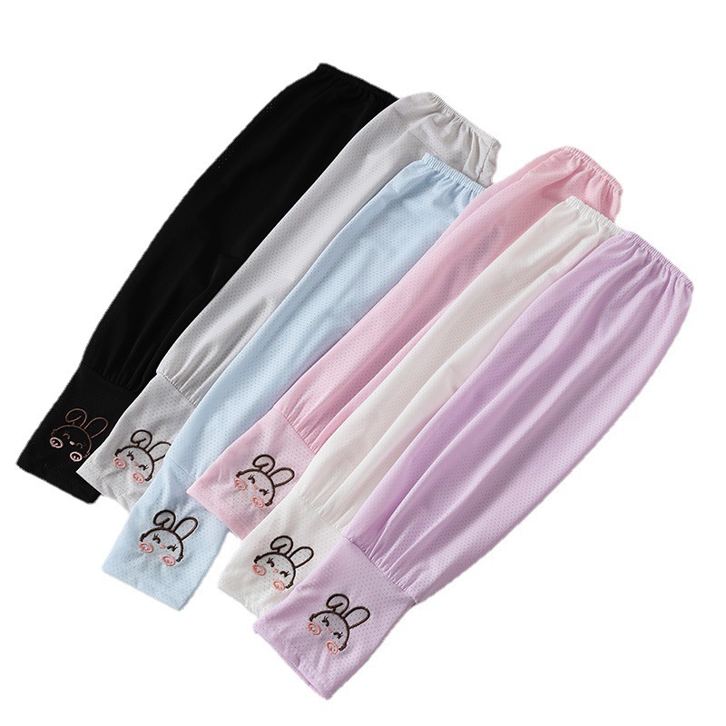 可爱歪耳朵兔子冰丝薄款透气夏季防晒袖套女宽松骑行护袖手袖冰袖